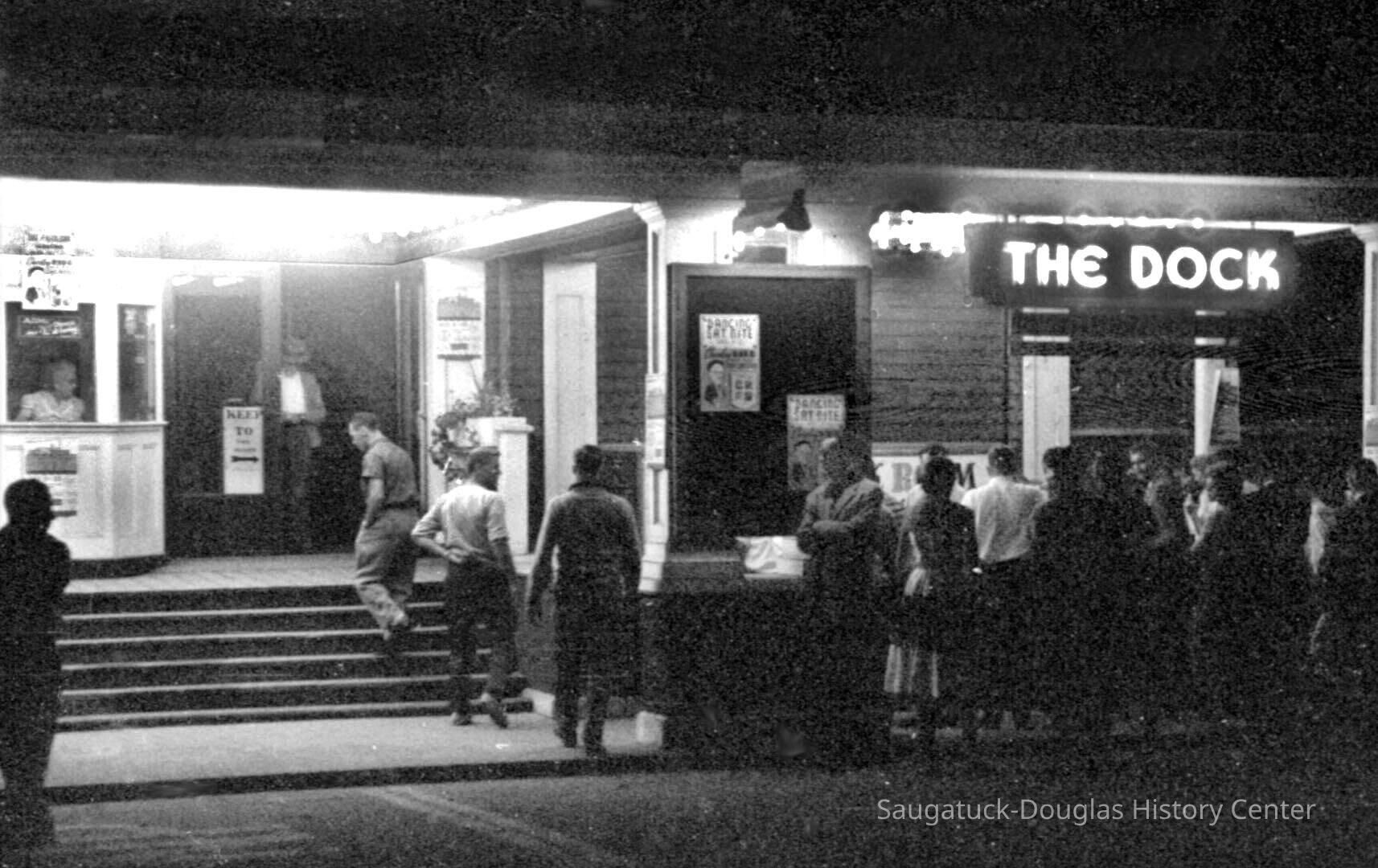 THE BIG PAVILION – LAST DANCE August 1945 – the world had changed. The war and the great depression were over. The “greatest generation” was ready to enjoy hard won peace and the heady prosperity of the ‘50s. Writing in the SDHS publication “OFF THE RECORD a pictorial history of Saugatuck in the ‘40s and ’50”, James Schmiechen had it so right when he wrote: “[After the war]…unknown at the time, the practice of leisure would never be the same. The next season, styles and freedoms had somehow changed. When the young men returned, the over 21 group preferred the light-heartedness and the combo [music] of ‘The Dock’ [bar] to the ‘Cokes’ and stately beat of the ballroom above. From then on, the ballroom was like a Victorian belle who, though she had lost her popularity, kept trying to keep up her appearances.”