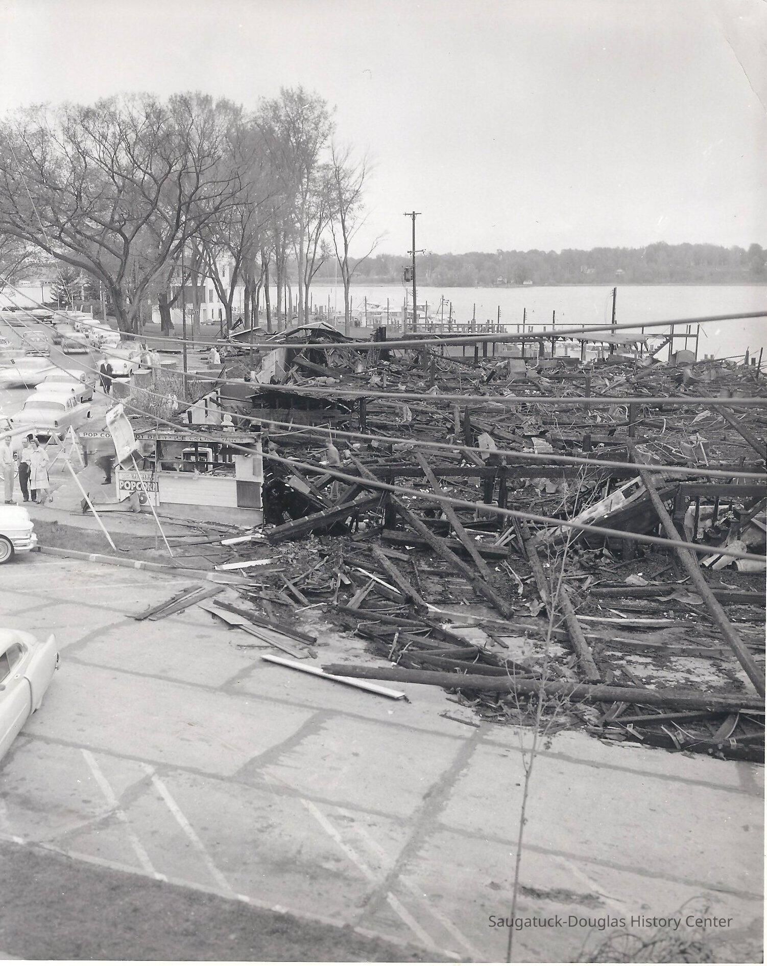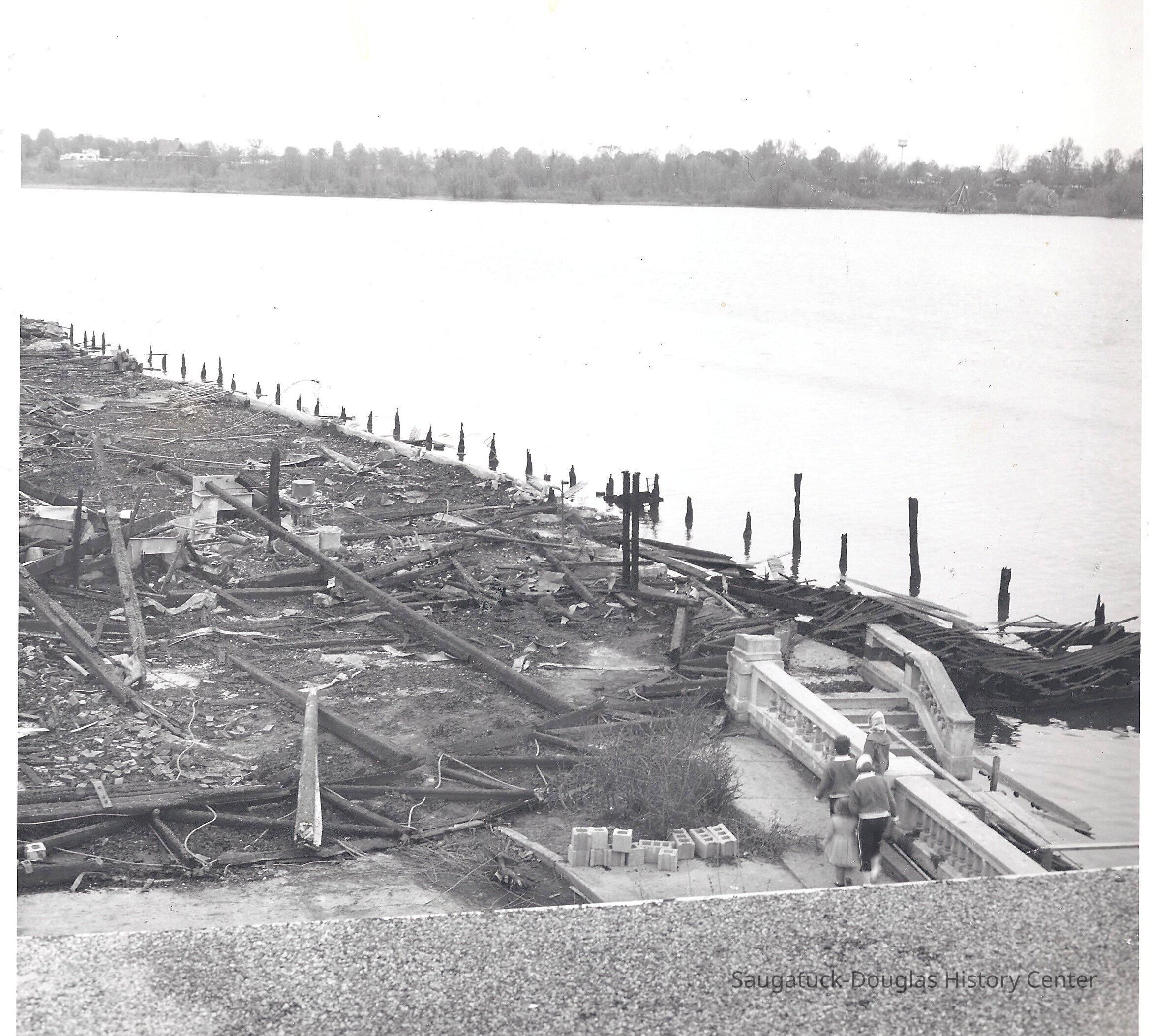 Three 8 x 10 black and white photos that were taken after the fire that burned up the Big Pavilion in Saugatuck, May 1960.Collection