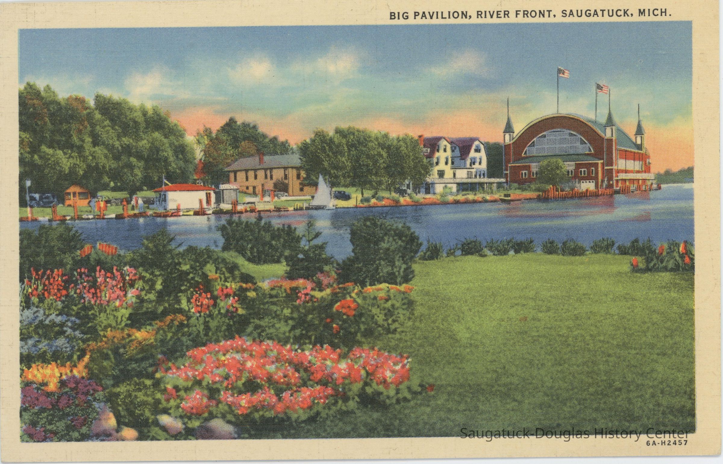 Postcard of the Big Pavilion and Saugatuck riverfrontSubject Person/Organization