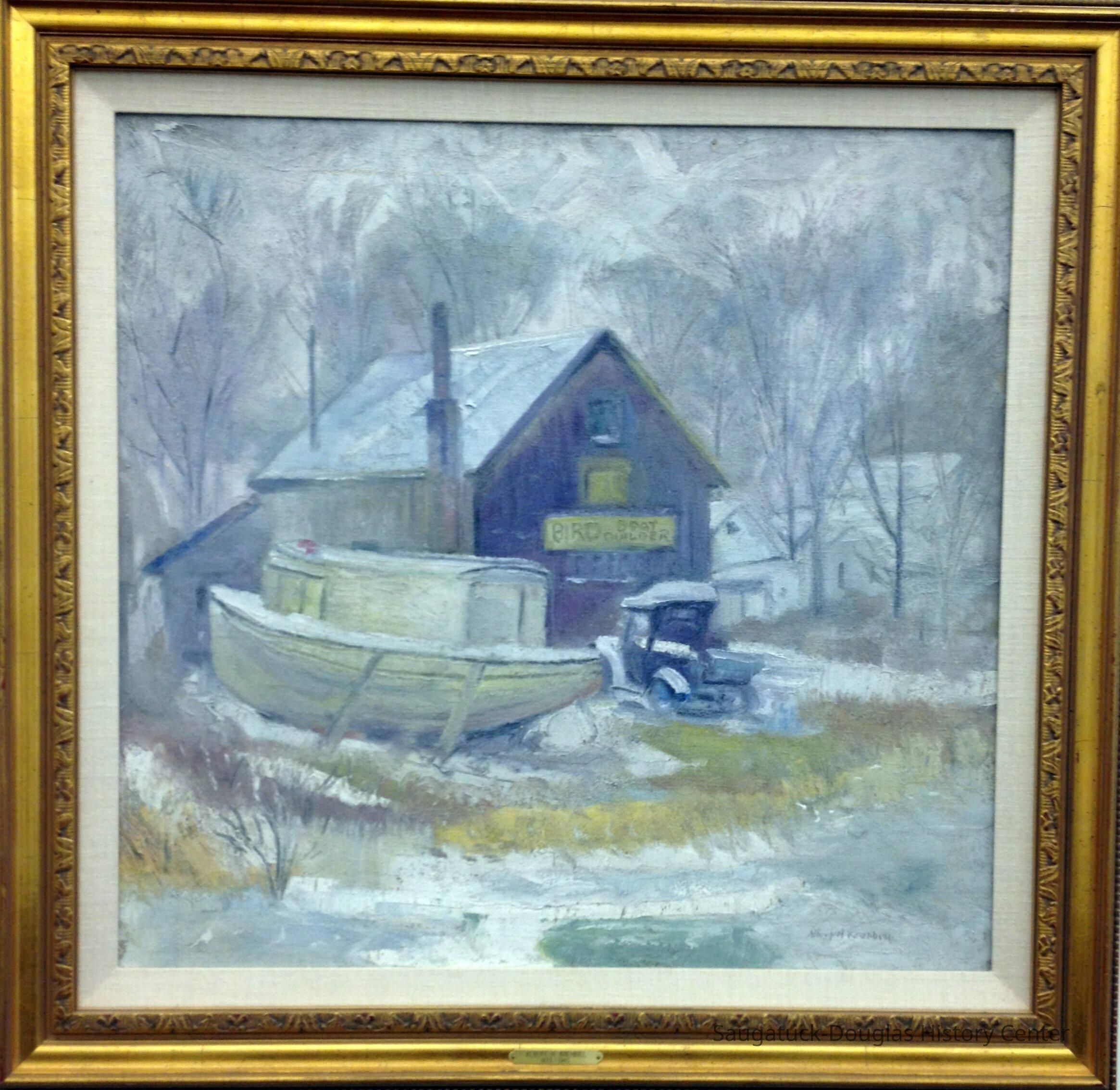 Winter scene, Boathouse, Bird Boat, Boat house, Krehbiel, Albert, Ox-Bow, OxbowDimensions