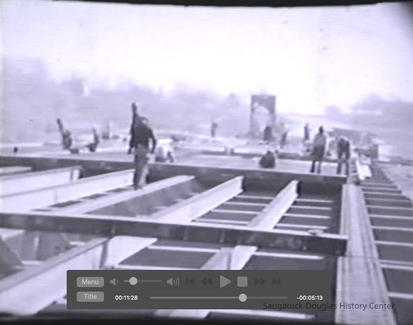 DVD of a 13-minute, b/w movie (no sound) that shows the construction of the Blue Star Highway bridge from the pouring of the footings, the metal spans, a diver being prepared to do underwater inspections, steel beams brought in on a large barge, the decks being poured and finally the new, modern bridge.
