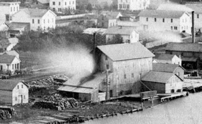 In 1879 the Heath grist mill burned and the property, a prime location on the river just north of the Mason Street end, was for sale. Seizing the opportunity, Rogers and Bird formed a partnership - bankrolled by Alfred. B. Taylor - and began to build and operate steamboats. Appropriately enough, the first vessel launched was named the A.B. Taylor. Mr. Taylor was a prosperous merchant who had once worked for Horace Moore, and went on to have a number of retail stores including one in the Landmark Building (now Kilwins). In the back of that building Taylor founded the Fruit Growers Bank (now Chemical Bank).