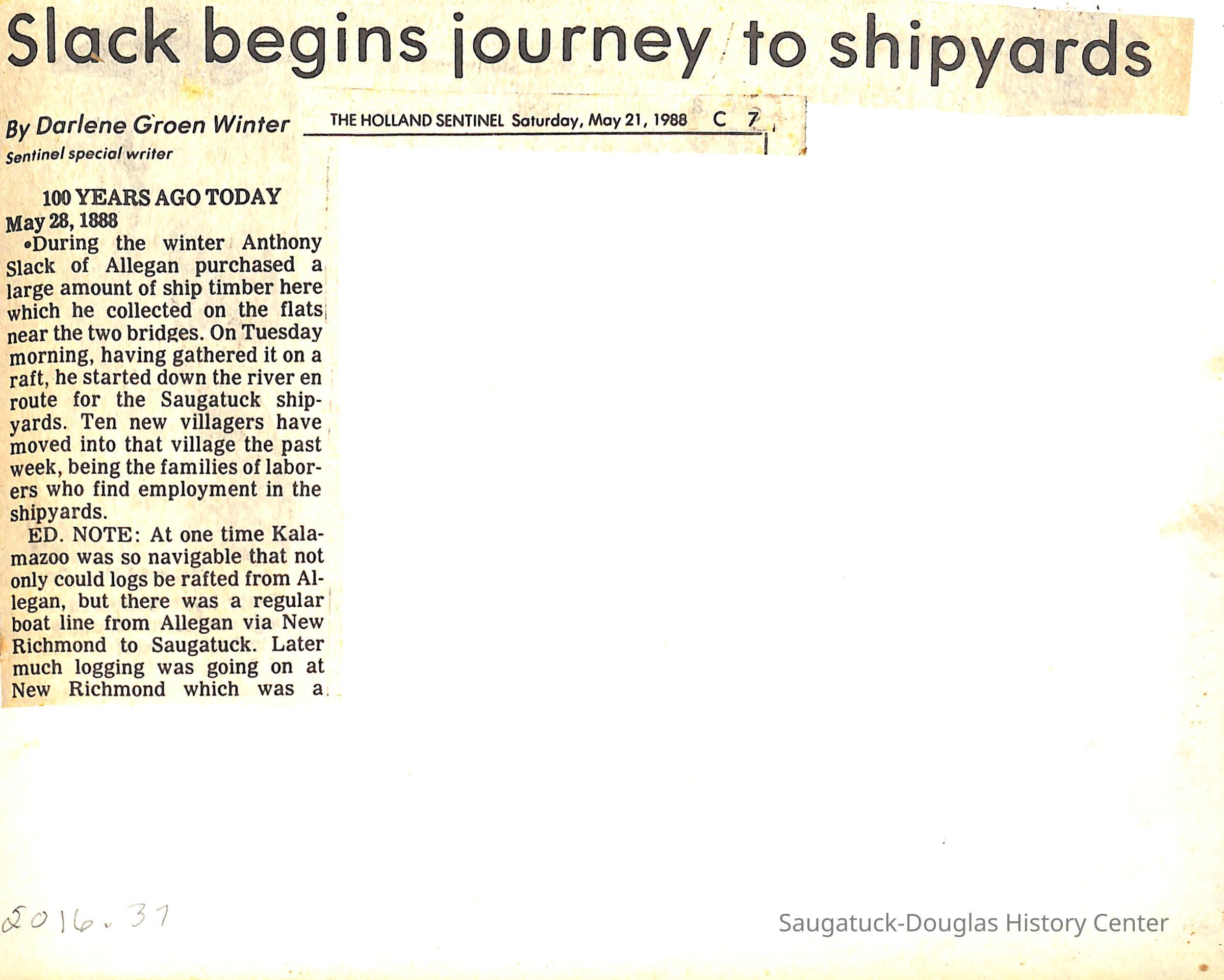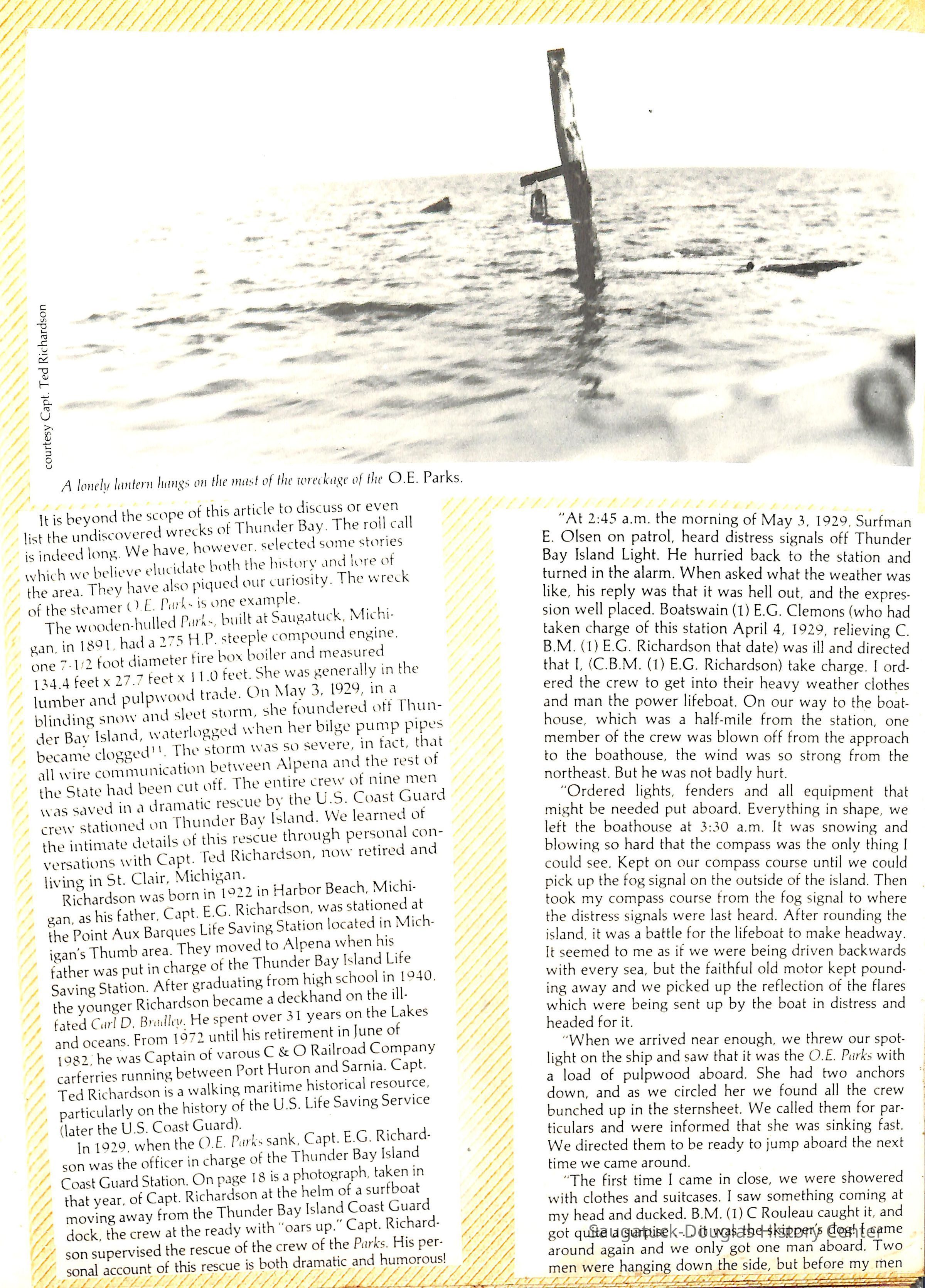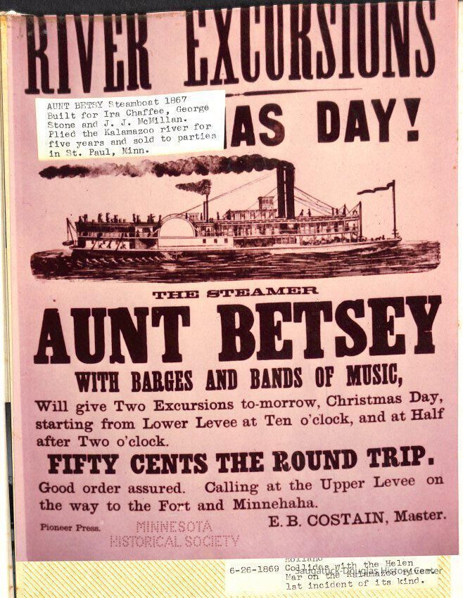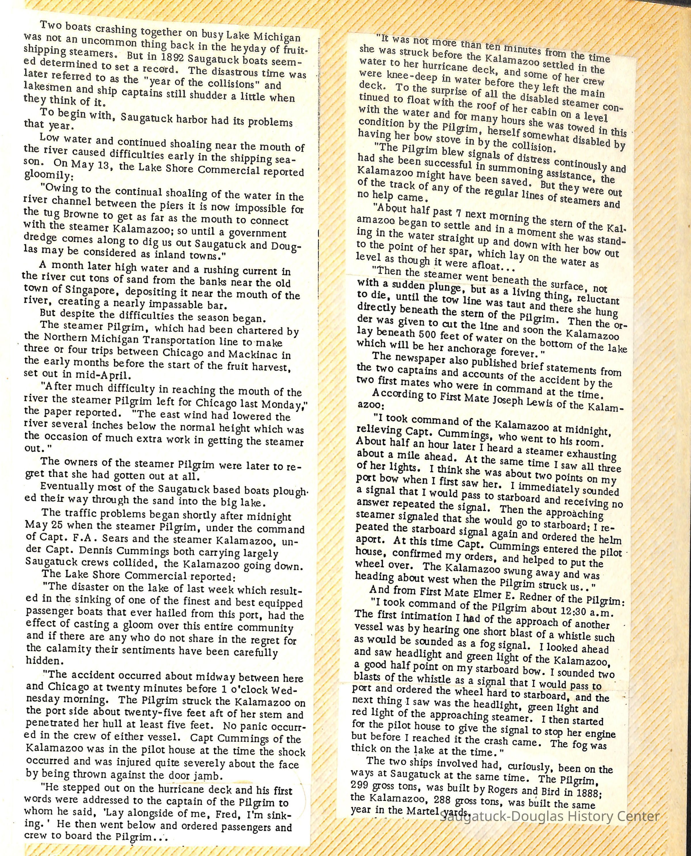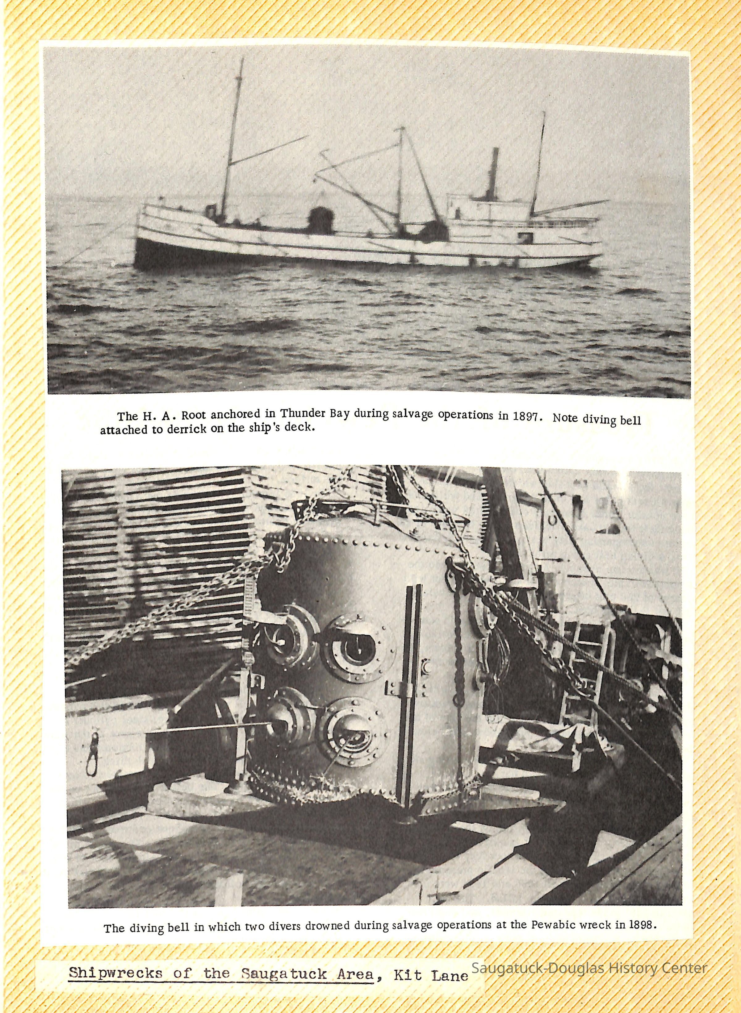 O.R. Johnson (ship), William B. Minter (ship) 1868-1901, F.B. Stockbridge (ship) 1873-1908, H.D. Moore (ship), George M. Case (ship), Saugatuck (tug) 1875-1930, J.S. Seaverns (ship) 1800, H.A. Root (ship) 1800, Douglas (ship) 1882, Mentor (ship) 1882, Macatawa (ship) 1882, A.C. Colborn (ship) 1882-1922, Charles West (ship) 1885 / Wau-Kon 1897 -1919, J.W. Parmelee (ship) 1883-1937, A.B. Taylor (ship) 1884 / Ottawa 1902-1910, Pearl B. Campbell (ship) 1883-1895, Joseph C. Suit (ship), Bob Teed (ship) 1883, F.H. Stanwood (ship) 1884, Hancock (ship) 1890-1947, Kalamazoo (ship) 1888-1892, Saugatuck (ship) 1887, R.C. Brittain (ship), Brittain, Ralph Case 1842-1905, Rogers & Bird Shipyard/Line, Cora A. Sheldon (ship) 1883, Frank Woods (ship) 1888, Charles McVea (ship) 1888-1928, Pilgrim (ship) 1888, R.C. Reid (ship) 1889, Flora (boat) 1889, George Nelson (ship) 1886, Bon Voyage (ship) 1891, Bon Ami (ship) 1894 / Northshore 1920-1945, O.E. Parks (ship) 1891, Ruby (ship) 1891, Pup (boat) 1894-1915 (left Saugatuck in 1907), Mae Martel (ship), John A. Aliber (boat) 1897-c1927, City of Holland (ship) 1893, J.S. Crouse (ship) 1898, A.R. Heath (boat) 1900-c1915, Tuscarora (boat) 1906, Cuckoo (ship) 1907, Anna C. Wilson (ship) 1912-1943, G.P. Heath (ship) 1871-1887, Ira Chaffee (ship) 1867