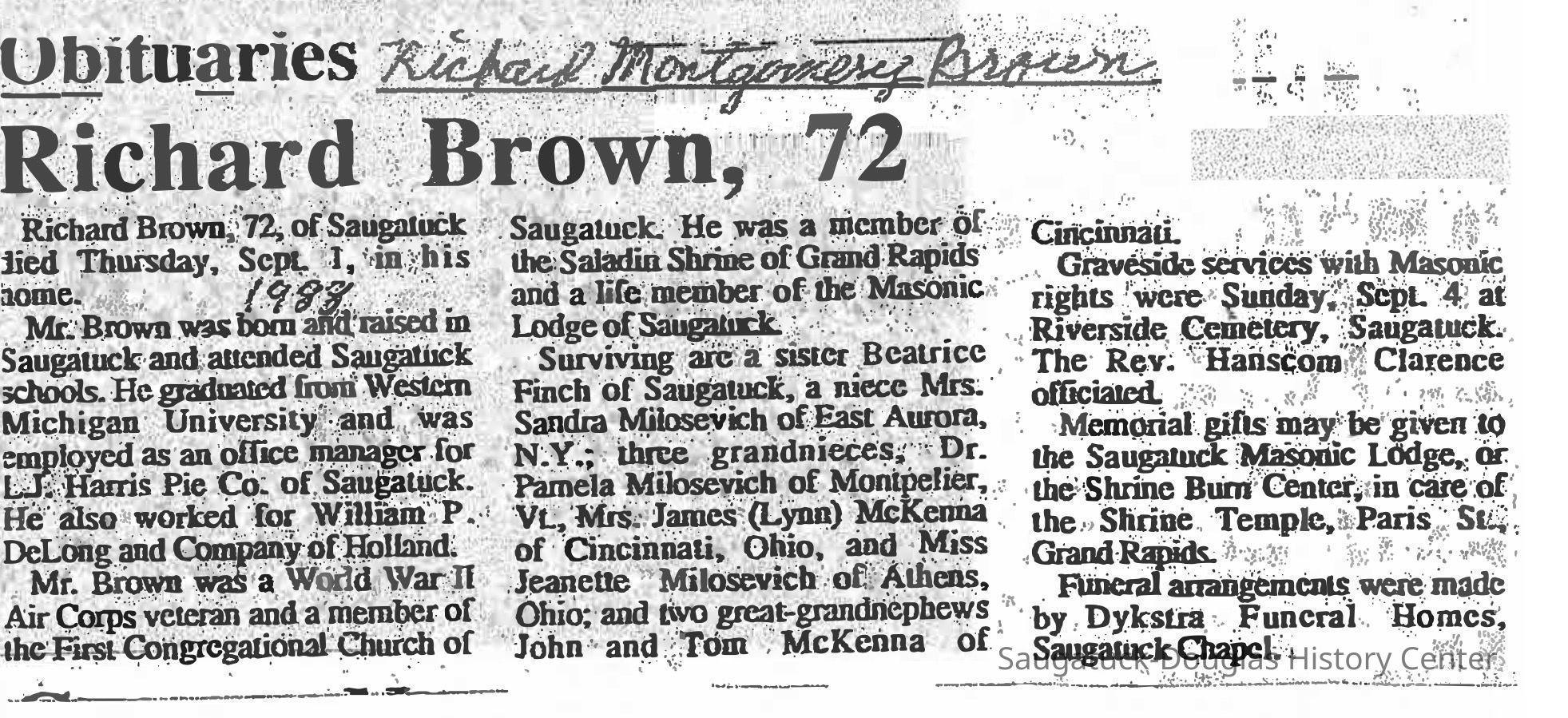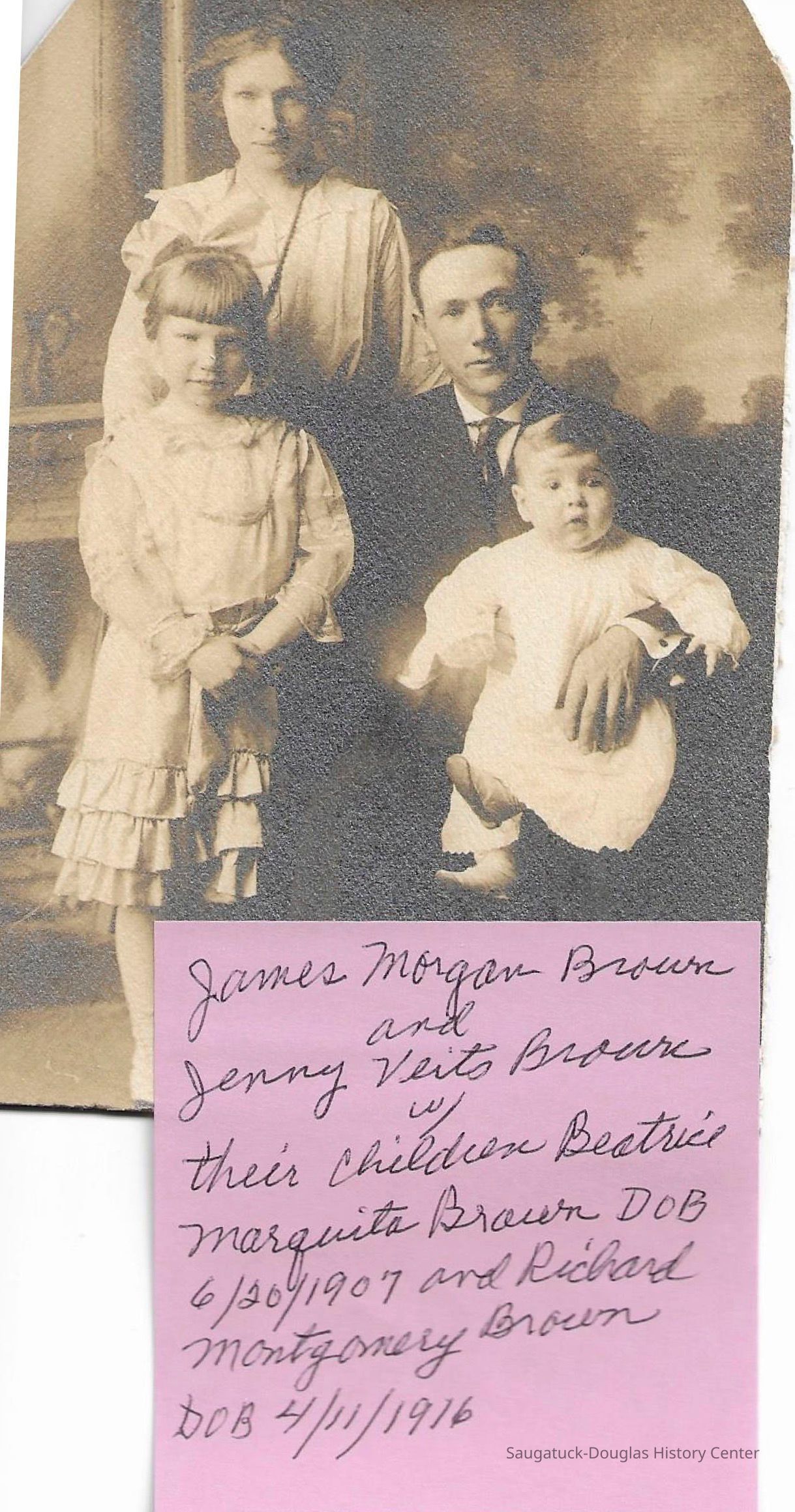 Brown, Jennie Ruby (Veits) 1883-1939, Brown, James Morgan 1875-1948, Brown, Joshua J. 1844-1939, Brown, Richard M. "Dick" 1916-1988, Finch, Beatrice Marquita “Bee” (Brown) 1907-2005, Edson, Sandra (Finch), Brown, Eudora (Morgan) 1850-1933, Veits, Loren E. 1860-1946, Veits, Hattie (Smalley) 1863-1948, Veits, Jessie Della 1885-1978, Veits, George 1895-1910, Veits, Raymond "Ray" 1888-1907