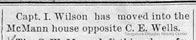 5-6-87 Capt. Fred Menier has moved his family to the mouth. Capt Robinson will occupy the rooms vacated by Capt. Menier, over Phelps & Co's store.