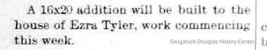 1-30-91 A. C. Zwemer has taken the wing of the old Densmore house as a nucleus for a new house which he is building on Lake street. The transformation of many an old rack into a comfortable and neat appearing residence is due to Mr Zwemers thrift .