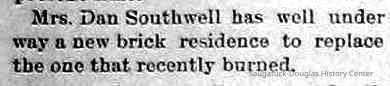 7-14-99 Last Saturday morning at about 6 o'clock, the building owned by the Blink estate, and occupied by Dr. J. H. Pear as a residence and office, was completely destroyed by fire. Dr. Pear had just built a fire in the cook stove and gone to the barn to feed his horse, and in his absence the wood work around the chimney caught and before it was discovered the fire had got beyond control. Mrs. Pear and children were visiting relatives in Illinois at the time but have since returned. The loss on both house and contents is covered by insurance.