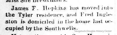 8-24-88 Carpenters and plasterers are at work renovating the Dwight house on the hill, recently purchased by Miss Emma Hubbard.