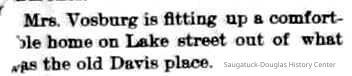 4-15-92 Mrs Vosburg is fitting up a comfortable home on Lake street out of what was the old Davis place.