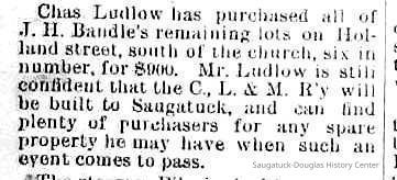 6-7-89 Chas Ludlow has purchased all of J. H. Bandle's remaining lots on Holland Street, south of the church, six in number for $900