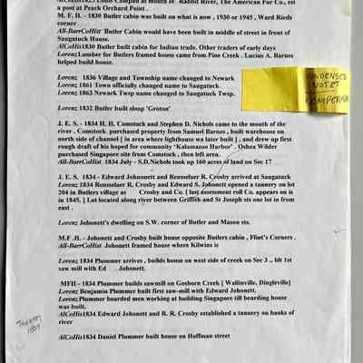 ![1. Bill Kemperman fax, April 2, 1997: 1-29-66 Saugatuck. - Many new and permanent improvements have been added to this place during the past season. Two new stores built —one by T. S. Coates, Esq., 24 x 60. Coates building is occupied by Messrs Johnson and Stockbridge; and the other is to be occupied by Dunning, Hopkins & Co., for Dry-Goods, Groceries, &c. A new feed store has been opened by Adolphus R. Mann, formerly of Manlius; also a new boot and shoe store by R. N. [B.] Newnham, formerly of the navy, besides a large number of dwellings in various parts of the village, which gives credence to the belief that ere many years are passed, Saugatuck will have recovered from her lethargy, and rank in commercial importance second to no town in the county.