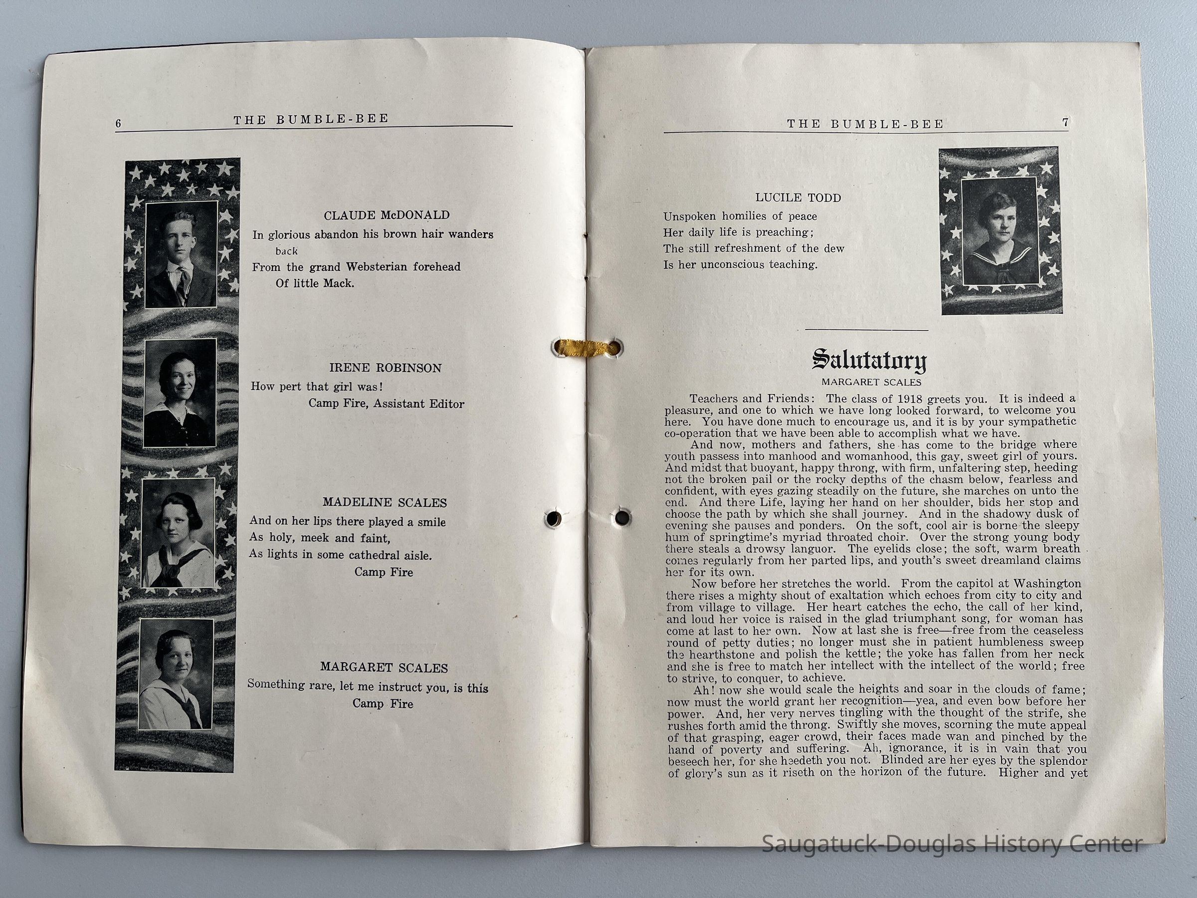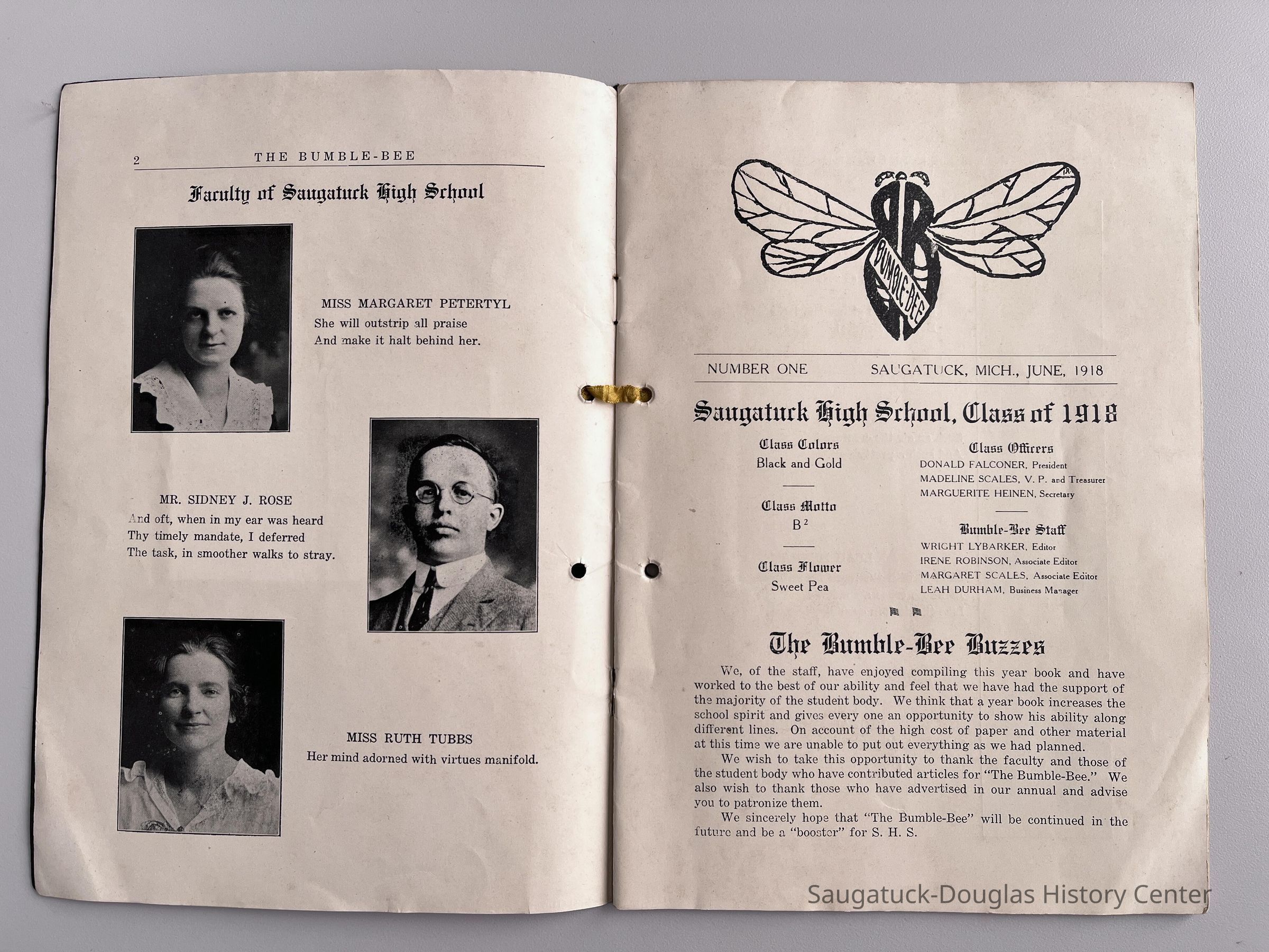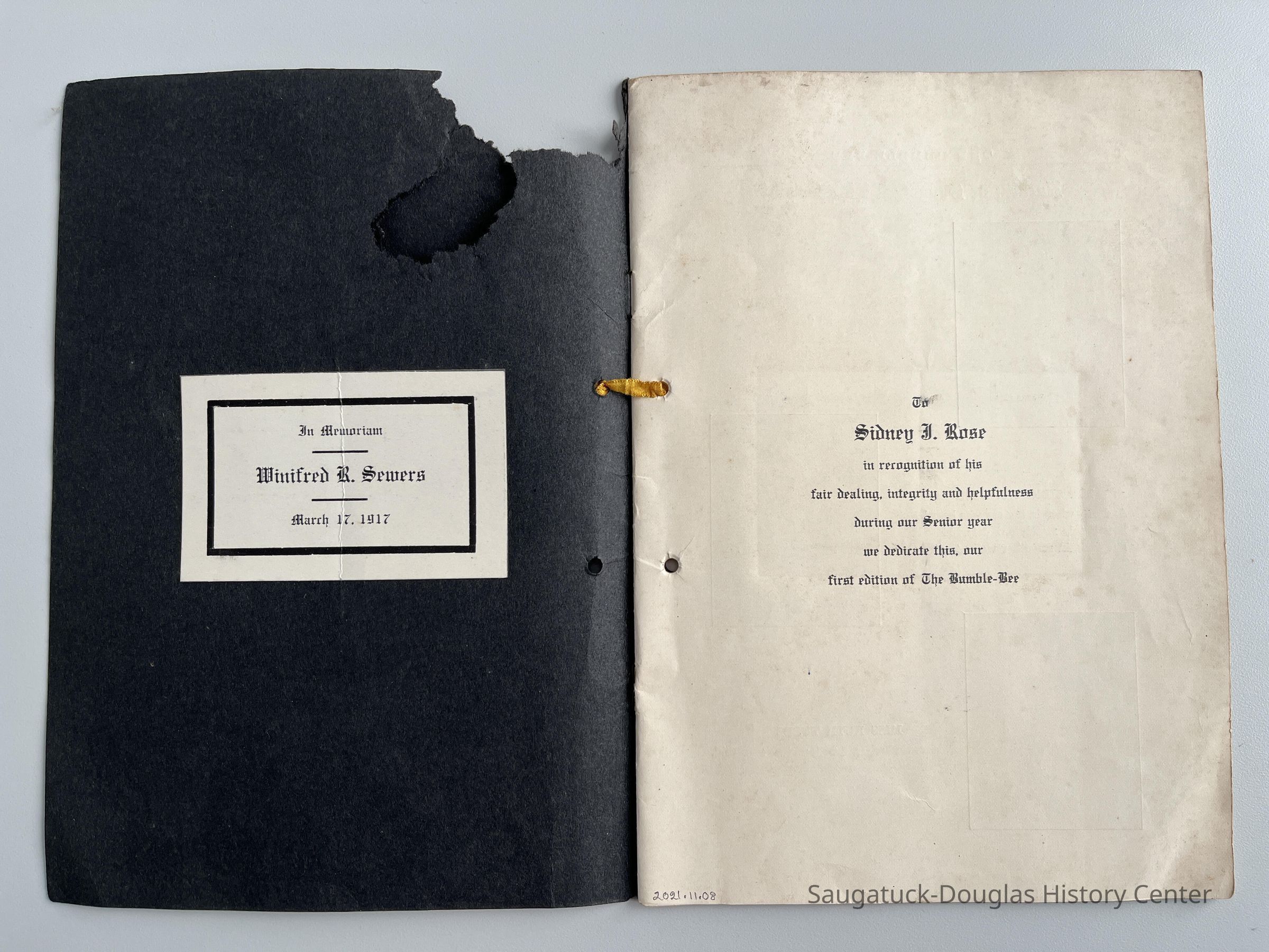 Saugatuck High School yearbook for the class of 1918. For details, please refer to 2016.37.01 and 2020.06.03, other copies of this book.