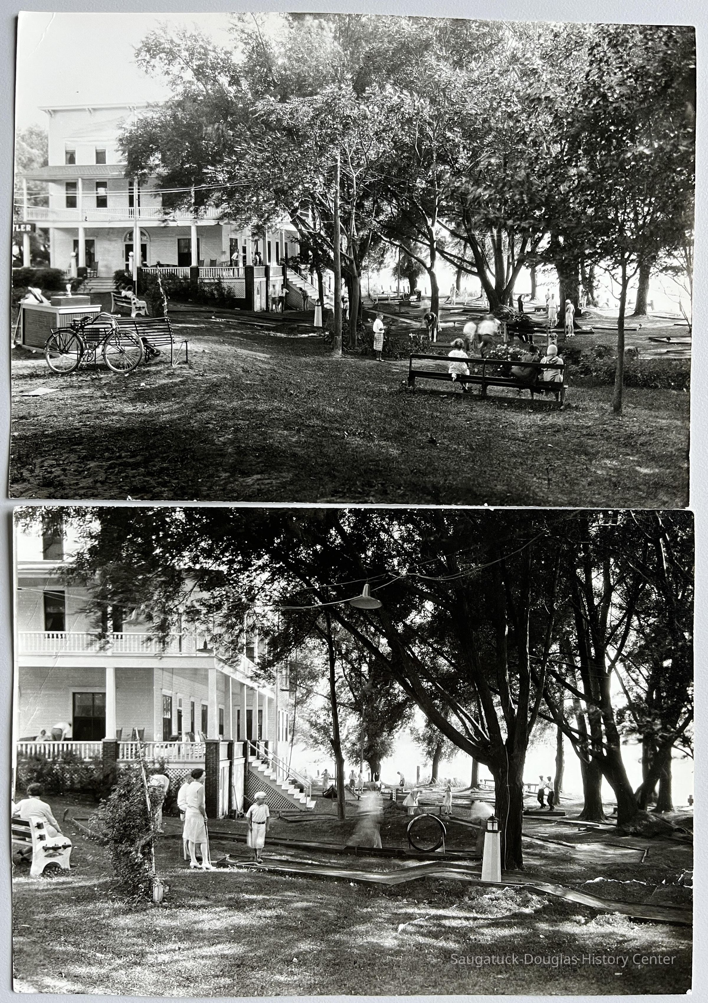 Two photos of the Butler Hotel showing the miniature golf range - notation on the back "The Hotel Butler, Saugatuck Michigan - I built it and ran it for two summers for Ed Harris - West Shore Gulf ------ I'm in the picture somewhere - Ev ThomasPhotograph Details