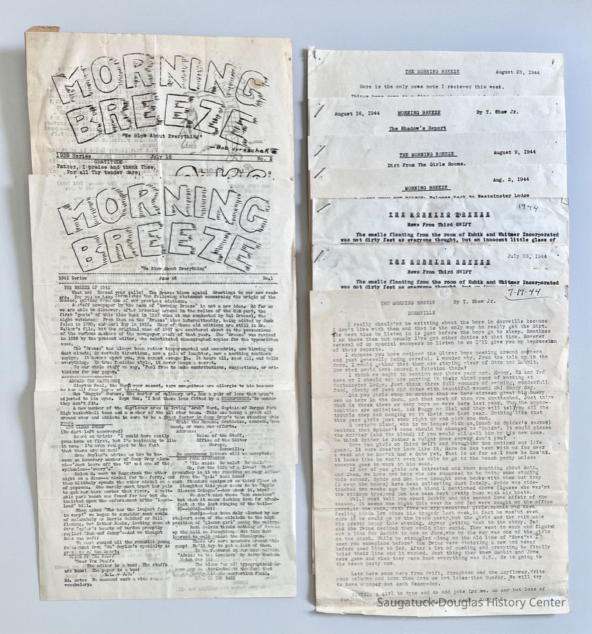 Morning Breeze Camp newsletters: seven issues from 1939, one issue from 1941, six issues from 1944.