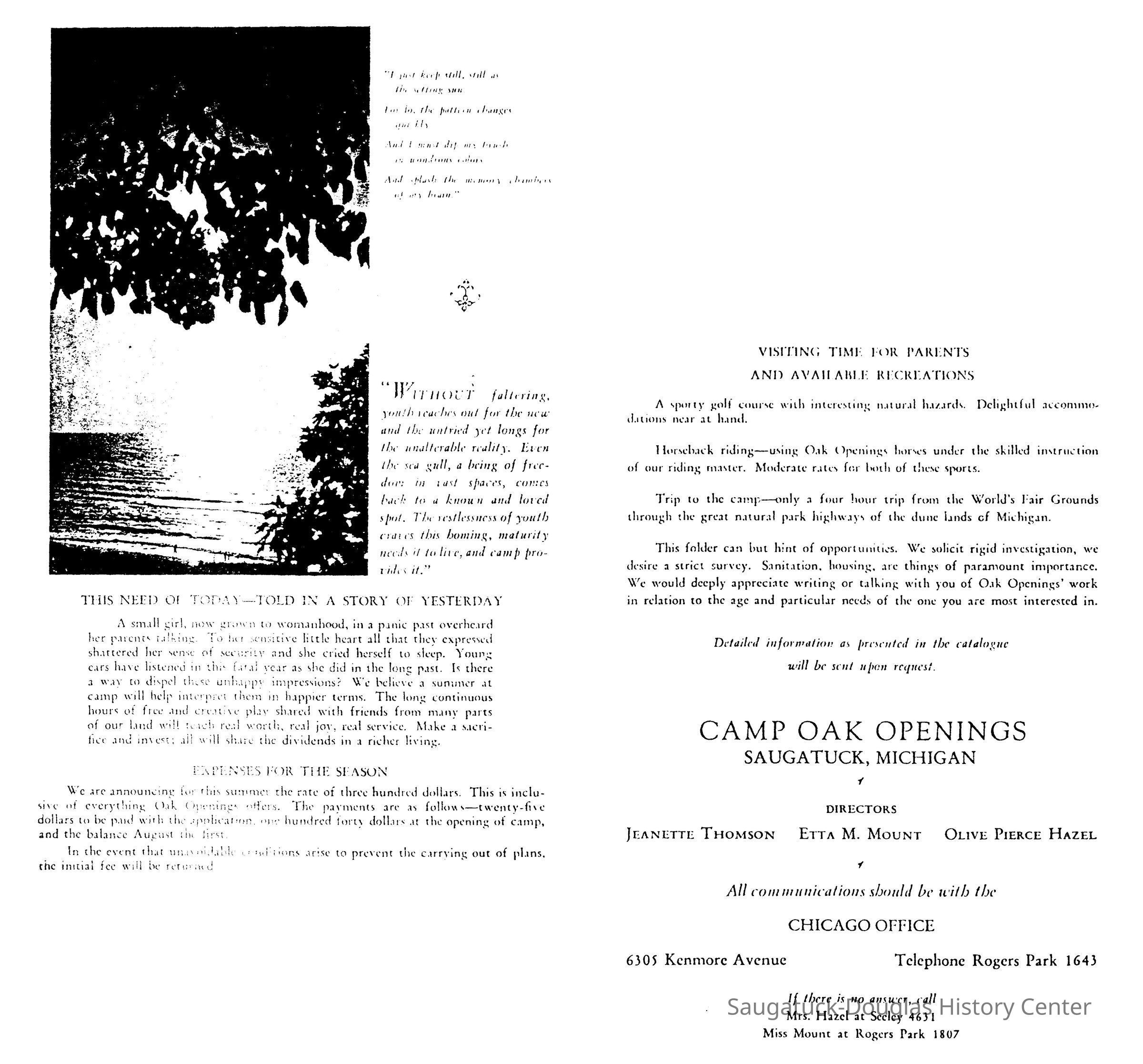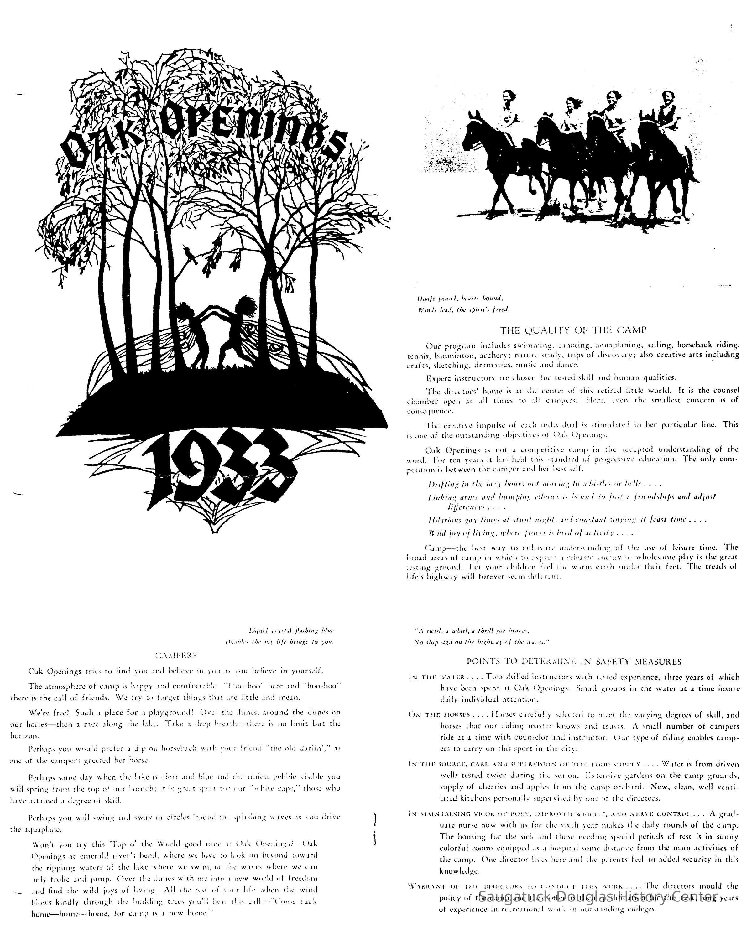 Two images from the brochure advertising Camp Oak Openings for the 1933 season.Context