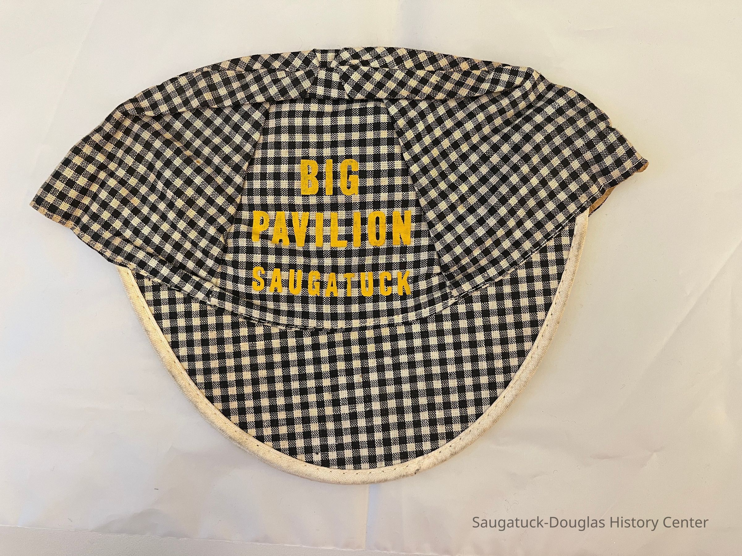 Black and white checked cap with the words in yellow: "Big Pavilion, Saugatuck"Collection