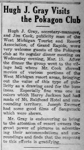 Gray, Hugh J. 1868-1943, West Michigan Tourist and Resort Association 1917-General Notes