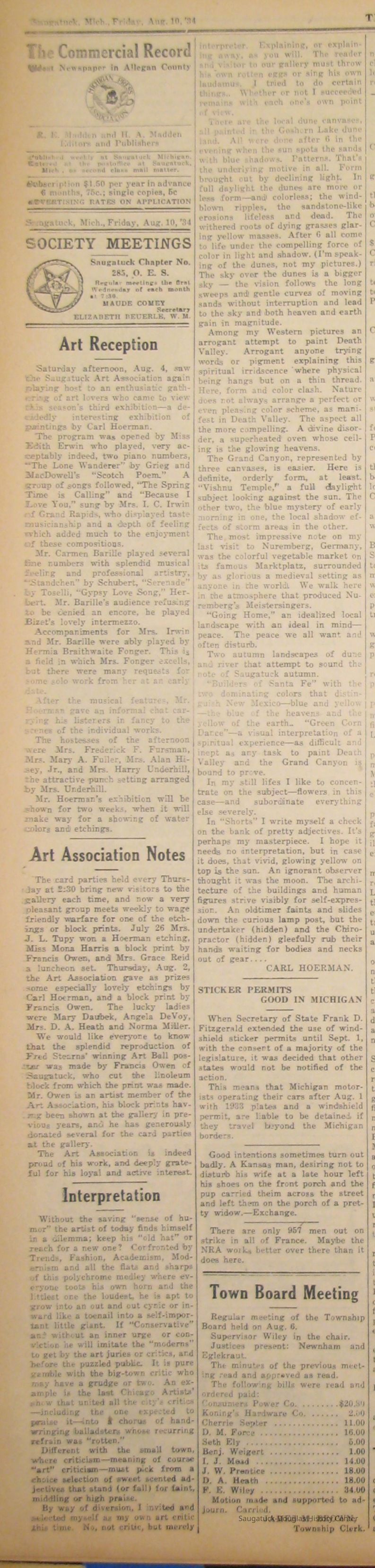 Collection of digital scans of Commercial Record newspaper clippings about artist and architect Carl Hoerman.Collection