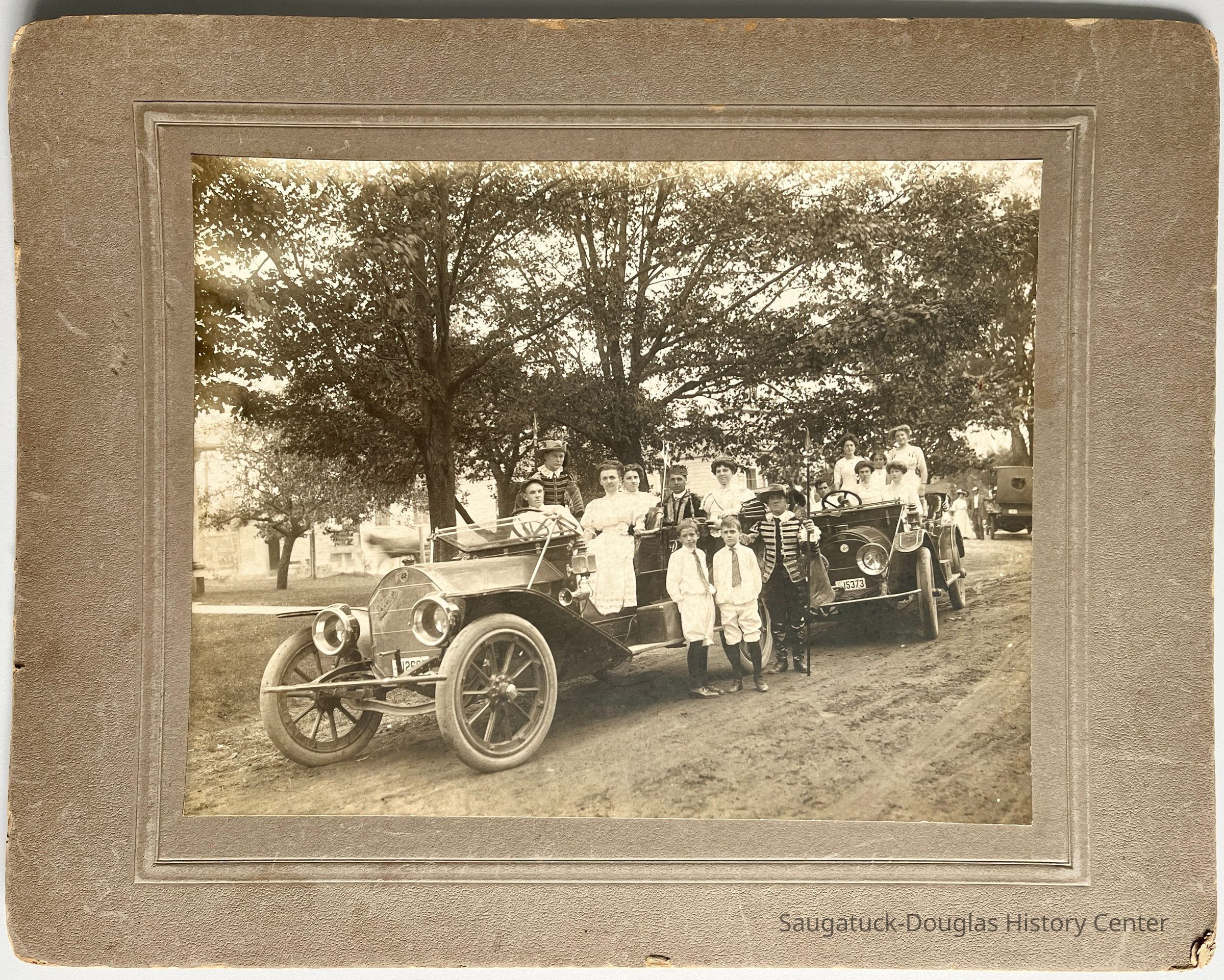 Cars with costumed people, c1910Entry/Object ID