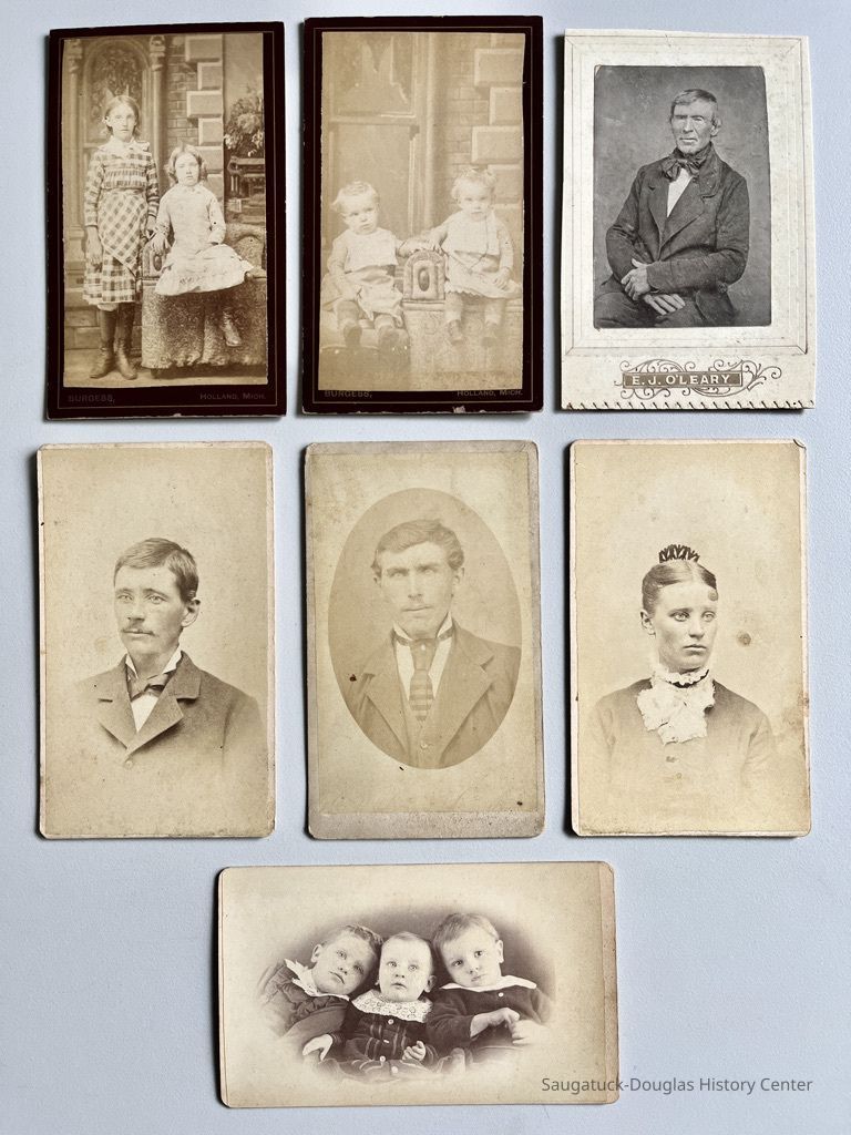 Two cards with brown backing cards are marked "Burgess, Holland Mich." and have the same background and armchair.