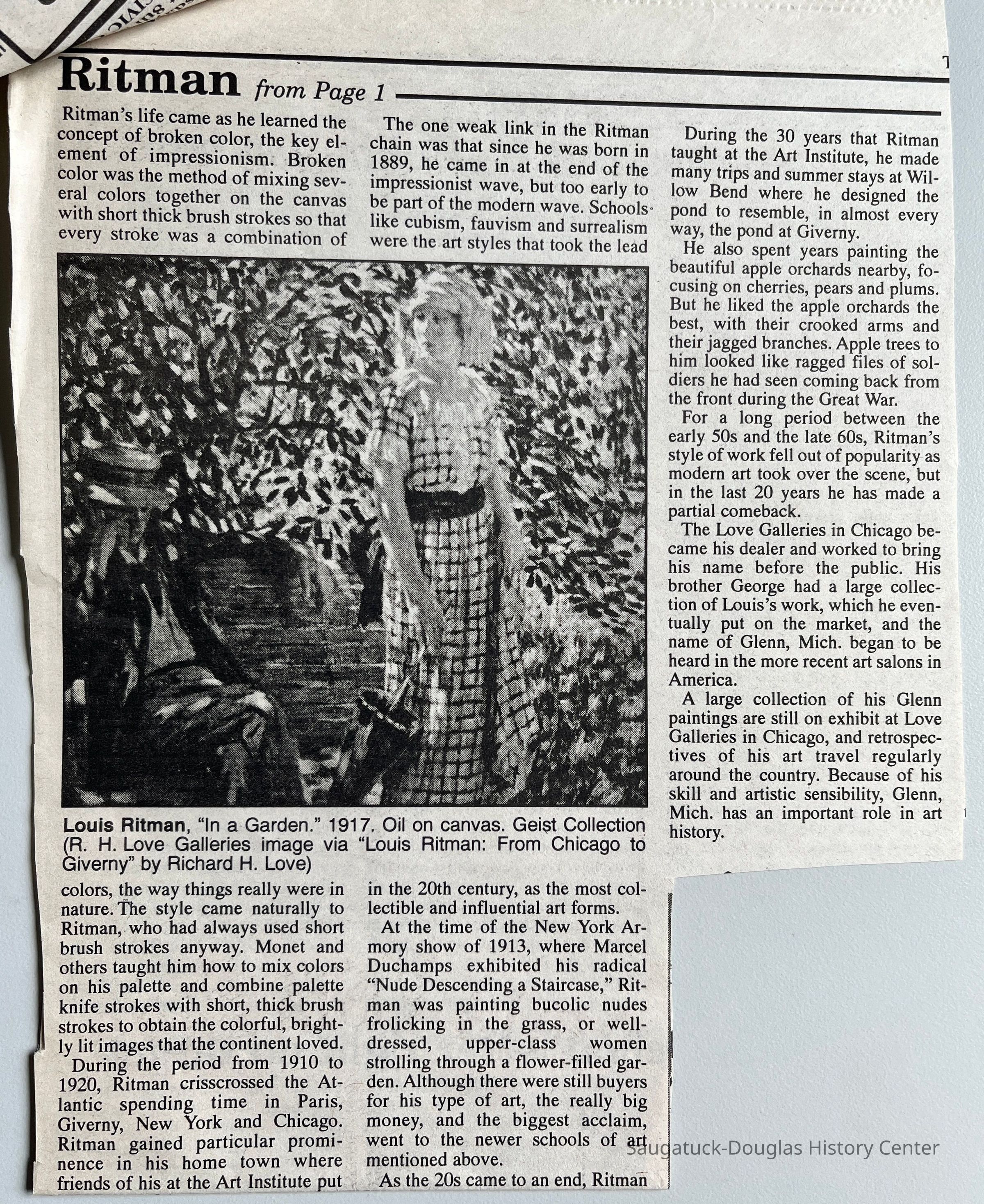 According to the article, Ritman, a professor of art the Art Institute of Chicago, spent more than 30 years painting and living at this brother George's "Willow Bend Farm" just north of Glenn.Collection