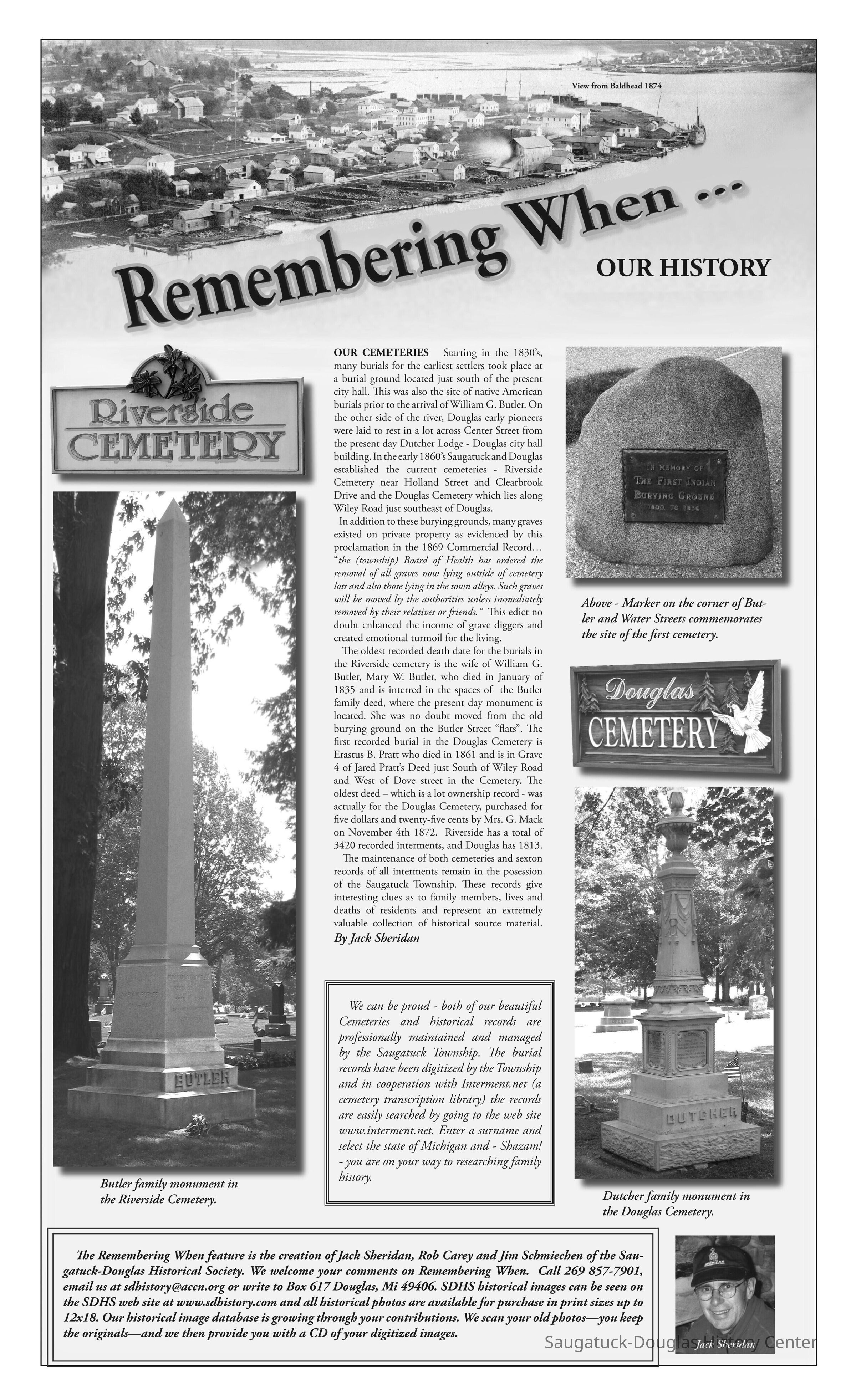 We can be proud - both of our beautiful Cemeteries and historical records are professionally maintained and managed by the Saugatuck Township. The burial records have been digitized by the Township and in cooperation with Interment.net (a cemetery transcription library) the records are easily searched by going to the web site www.interment.net. Enter a surname and select the state of Michigan and - Shazam! - you are on your way to researching family history.Collection