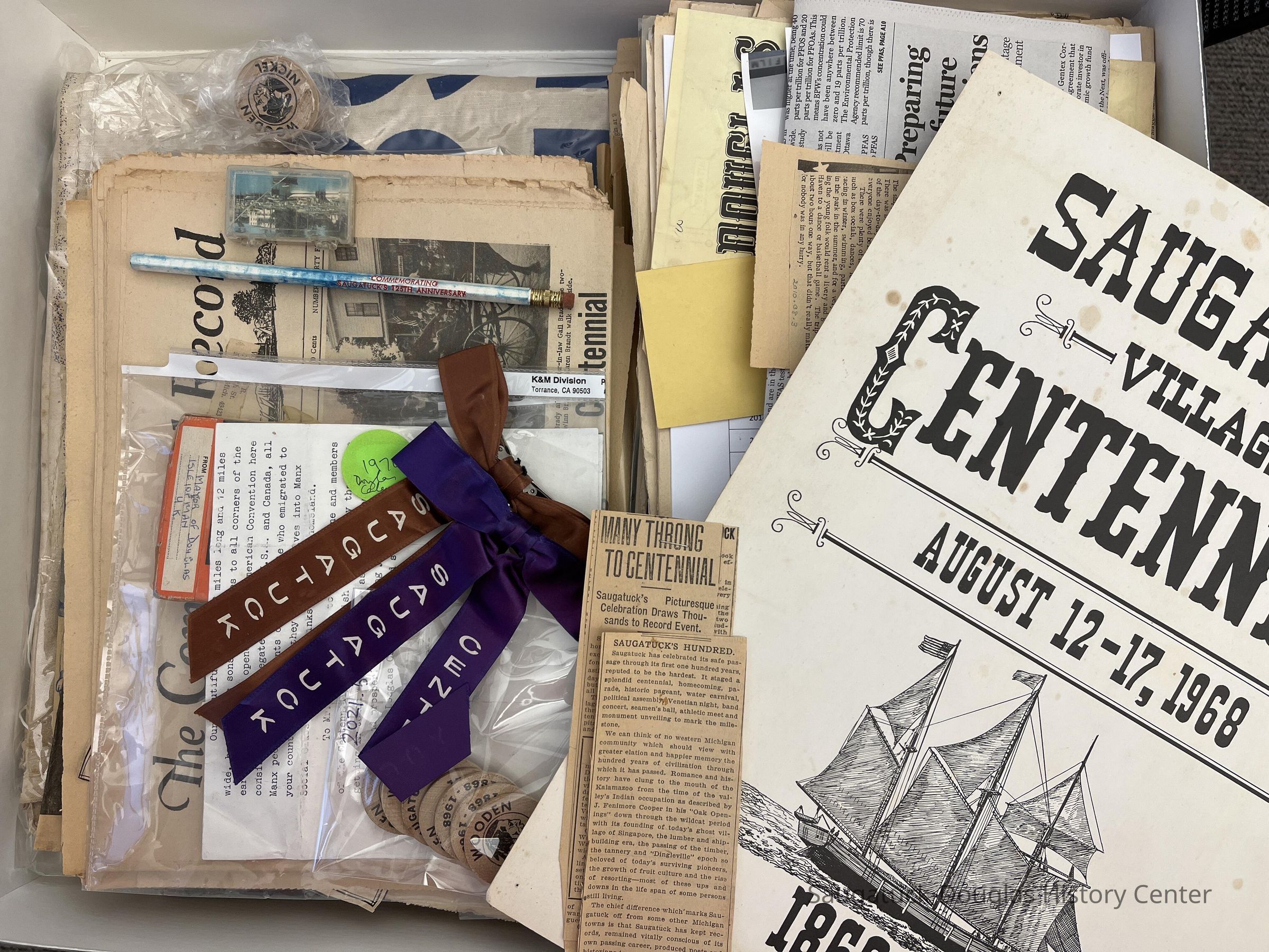 Collection of items associated with the 1930, 1968 and 1970 centennial celebrations plus Saugatuck's 125th anniversary in 1955.