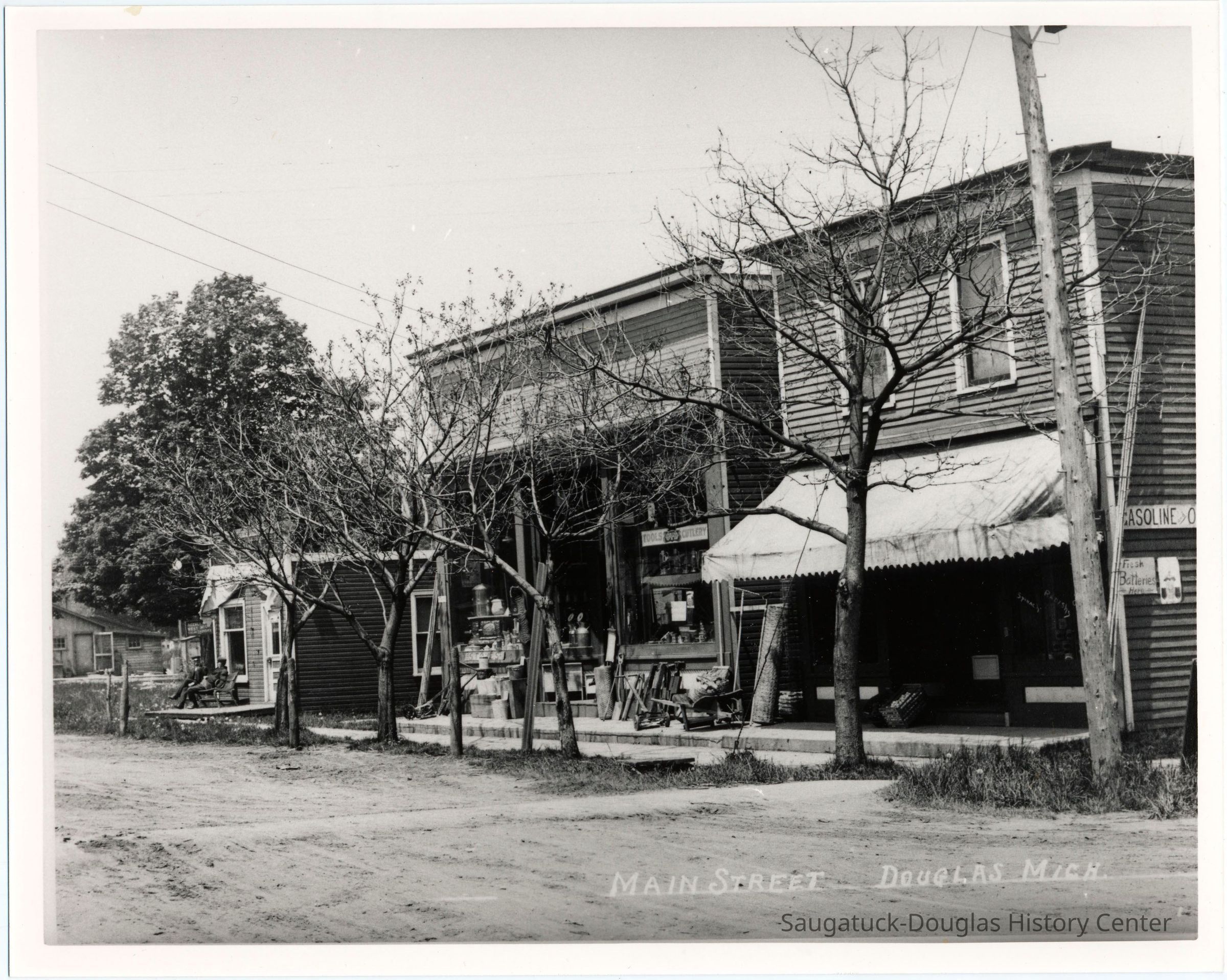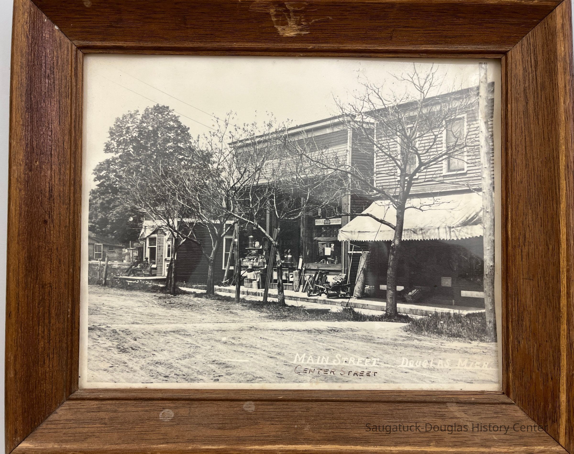 Text inscribed in the print read "Main Street Douglas Mich" The street is actually Center Street. The photo shows the north side of the block between Main and Washington.