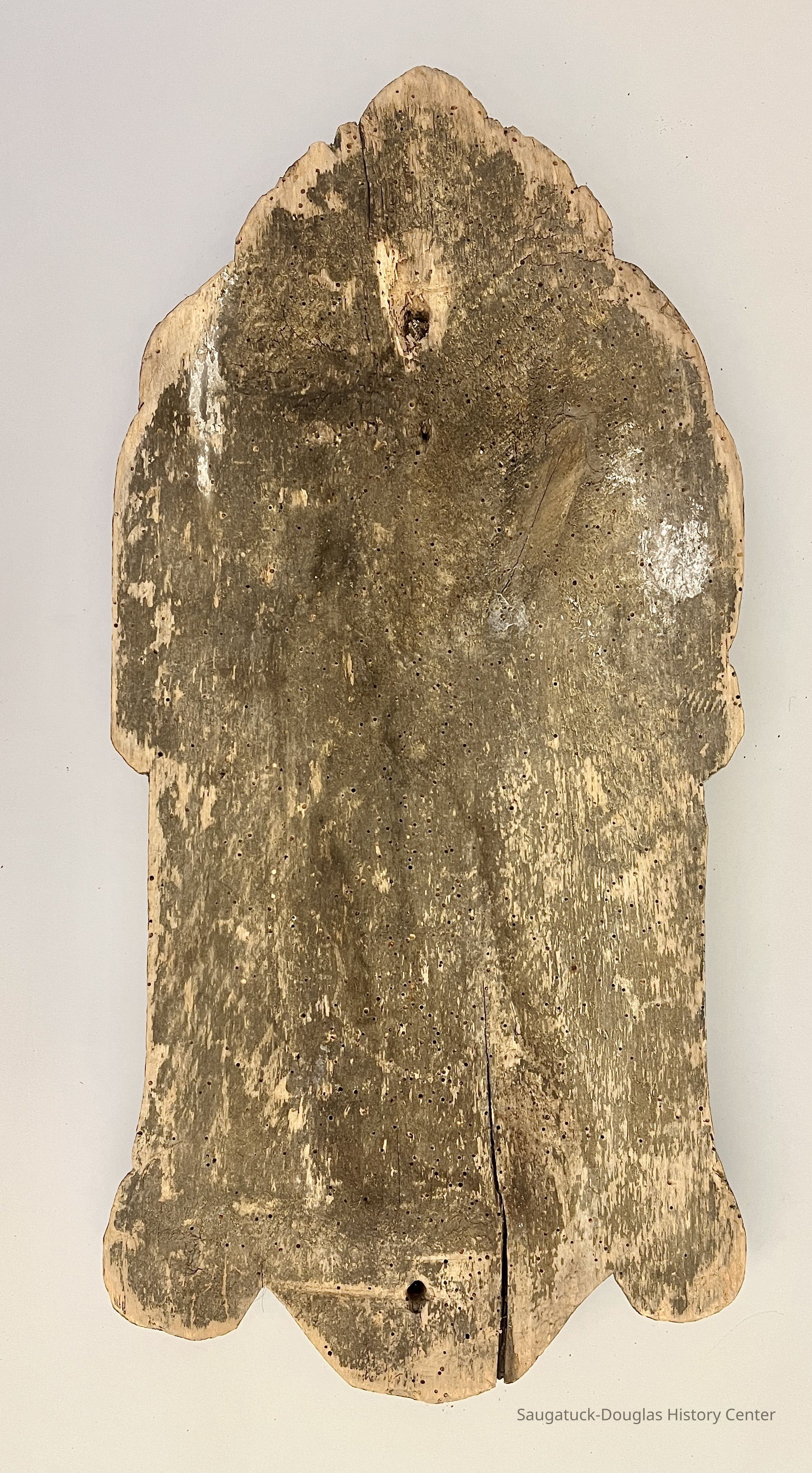 The wood is significantly weathered with checks and tiny boring-insect holes.Relationships