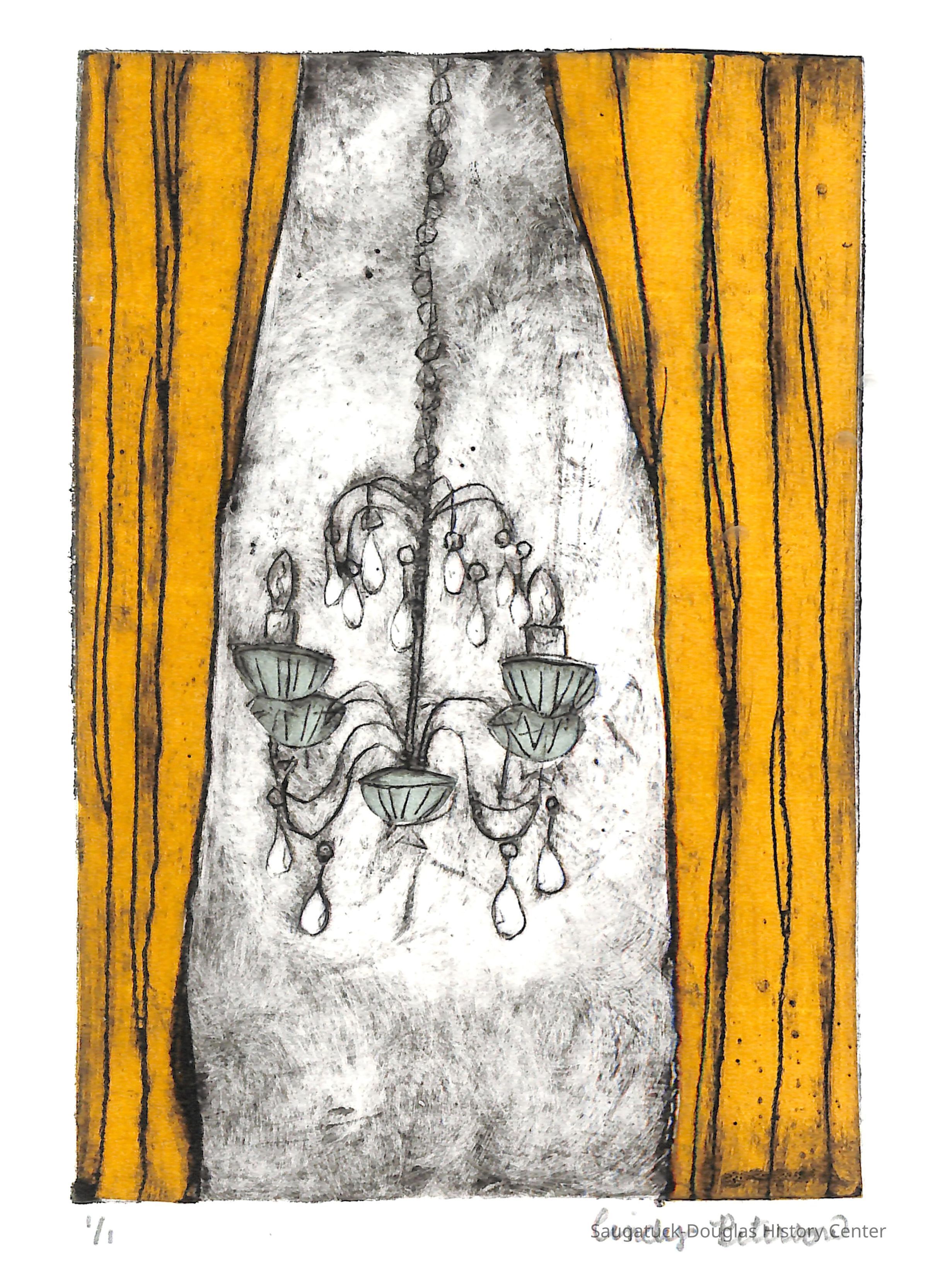 the art | This print was made in a printmaking class at Ox-Bow, Saugatuck’s famous and longstanding Summer School of Art. It is from an early period in Peterson’s work. Her interest in classical realism, the style she for which she is now most noted, was developed later when she studied with painter Thimgan Hayden.