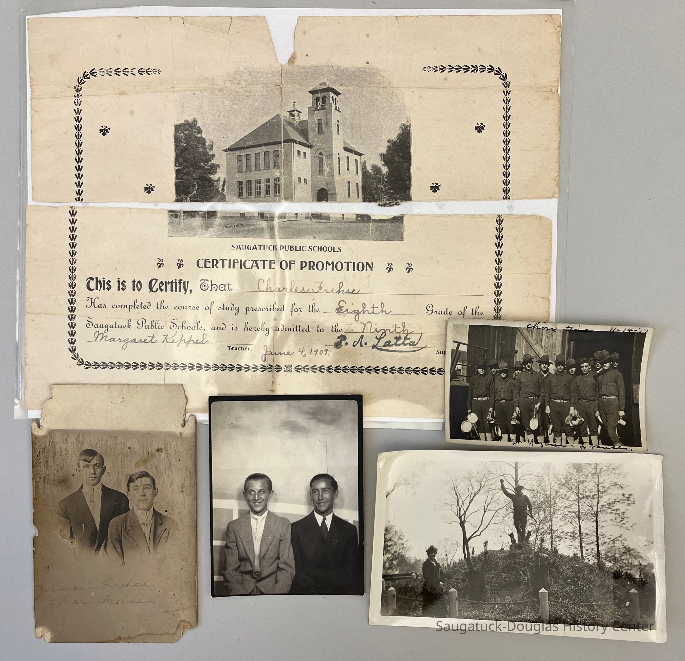 Loose photos and 8th grade diploma for Charles Frehse. More photos are in the Frehse family albums. Also pictured is Charles' brother Russell.Photograph Details