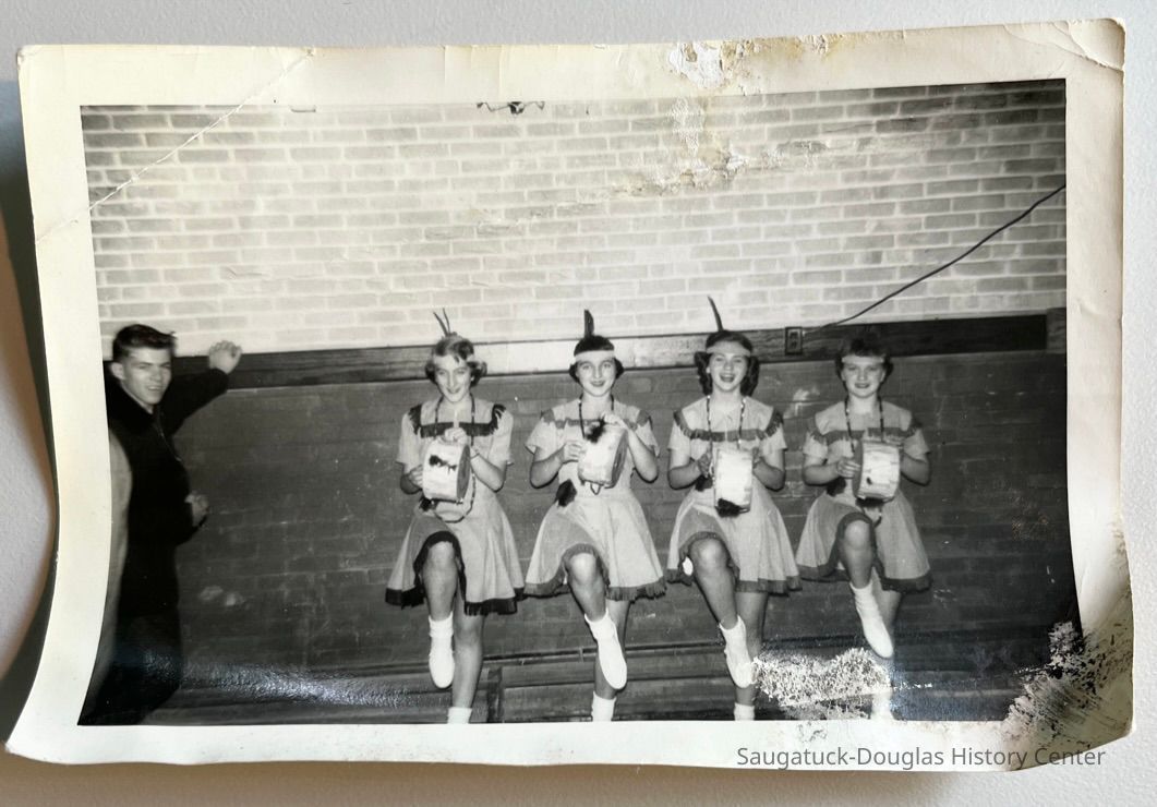 Prior to Feb. 2021, when the Saugatuck High School adopted the new Trailblazer mascot, the Saugatuck teams were known as the Indians. These four young women were likely high school cheerleaders dressed up to support their team.Collection