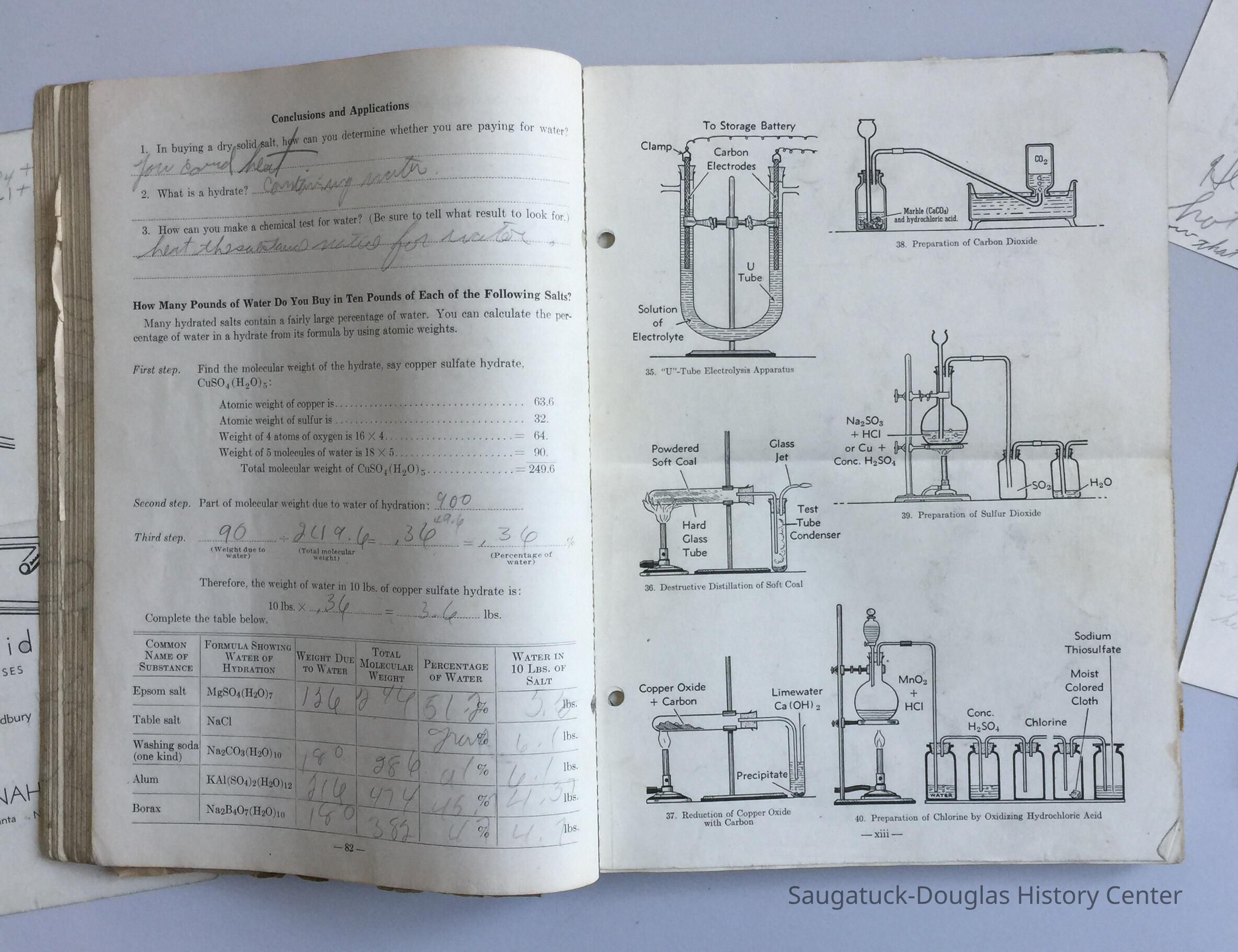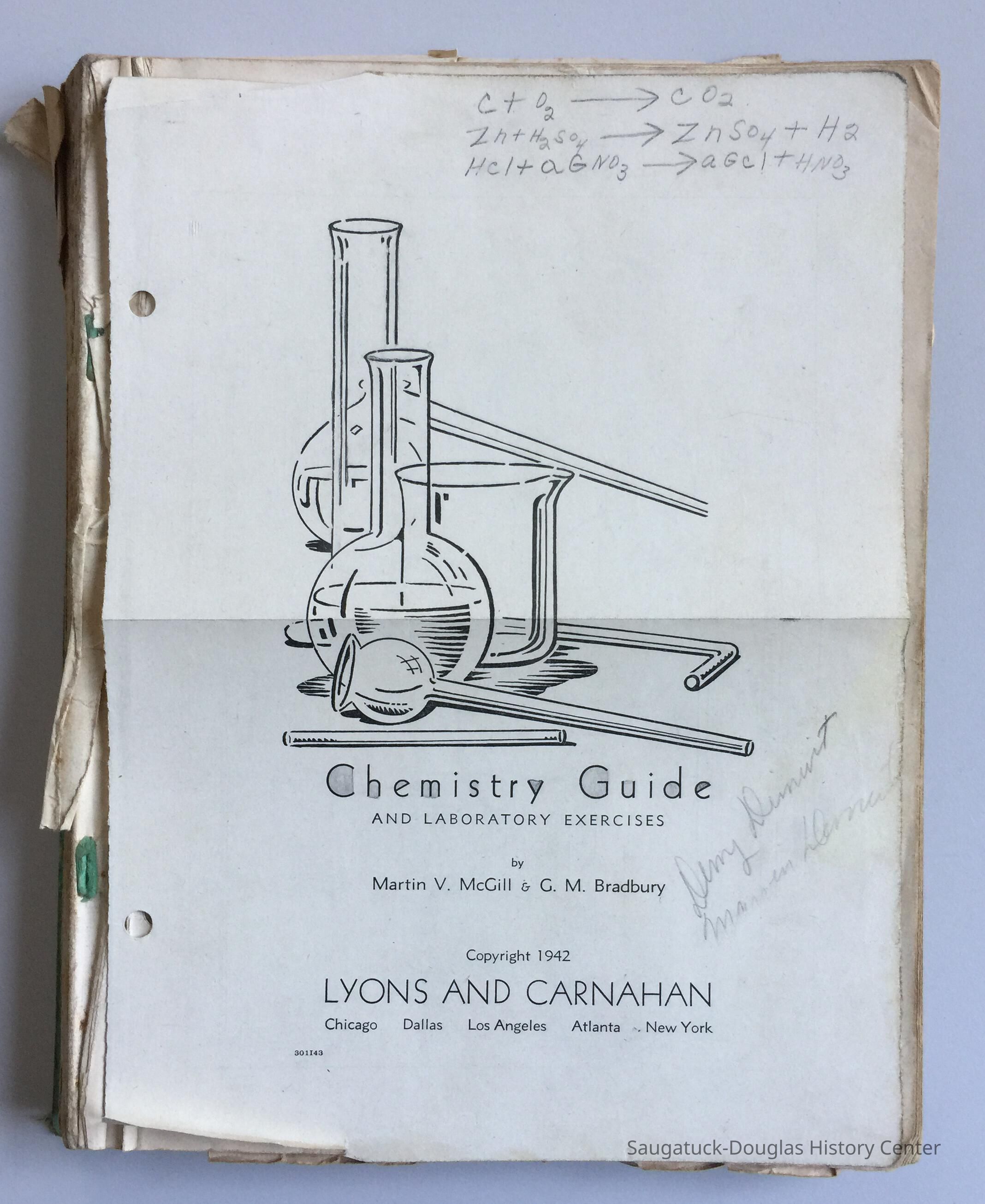 Chemistry Guide and Laboratory Exercises textbook filled with notes by Saugatuck High School studentContext