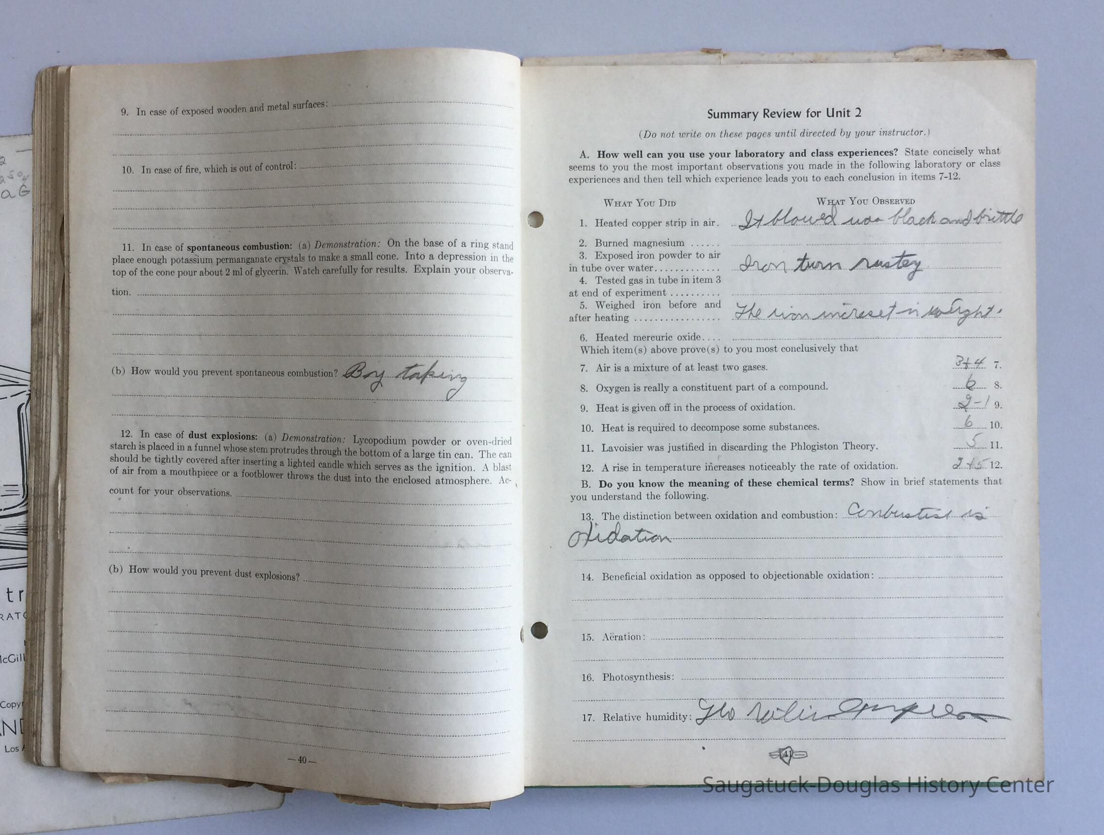 Example of science education circa 1945. Personal notes to friends tucked inside.Acquisition