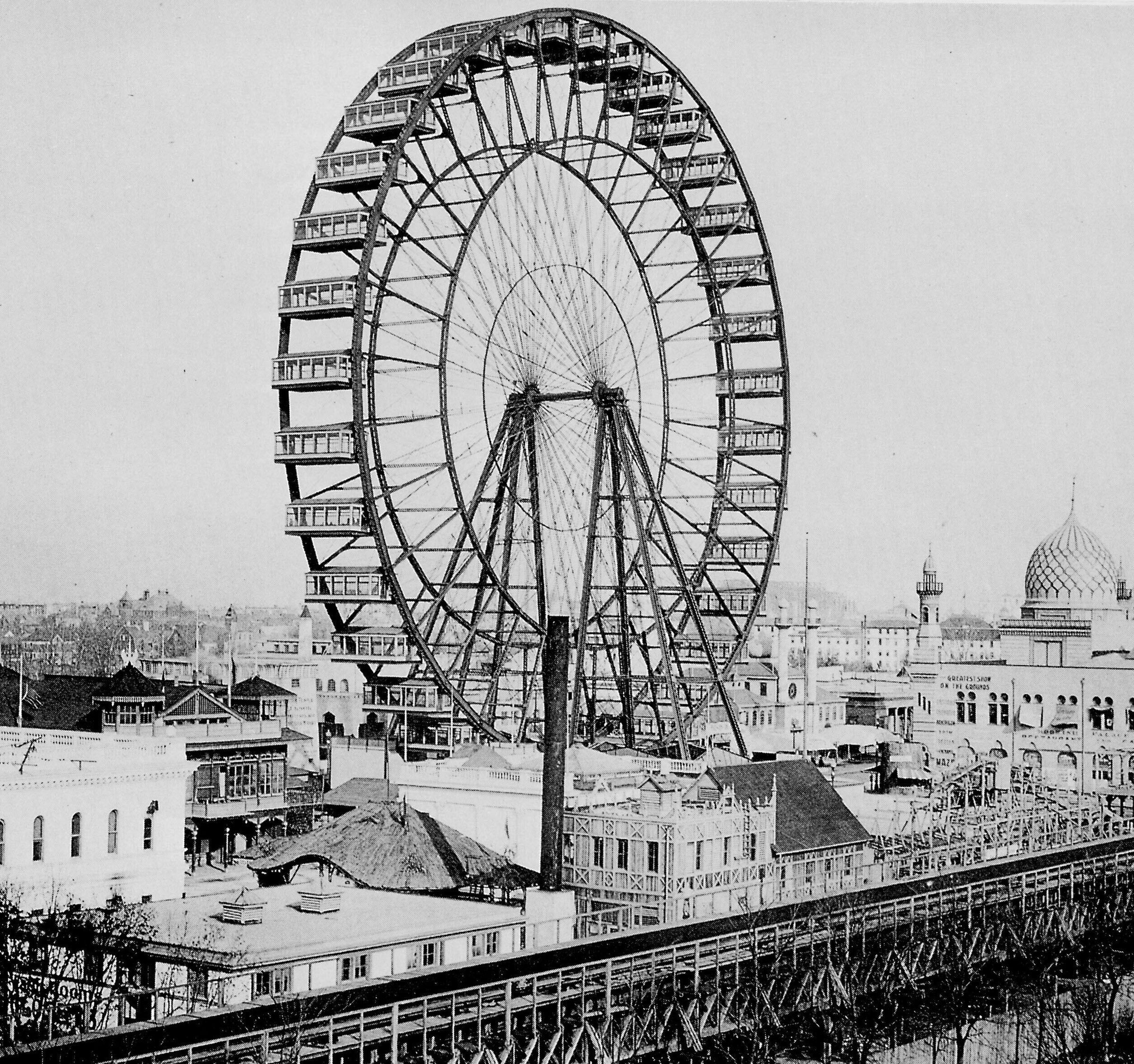 Somehow, someway, Ferris got the job done, and in June a band conductor blew his whistle; and the Iowa State Marching Band—40 strong—began playing and marched into one of the waiting cars. And the band kept on playing as they went up in the air in the world’s first and biggest ever Ferris wheel.