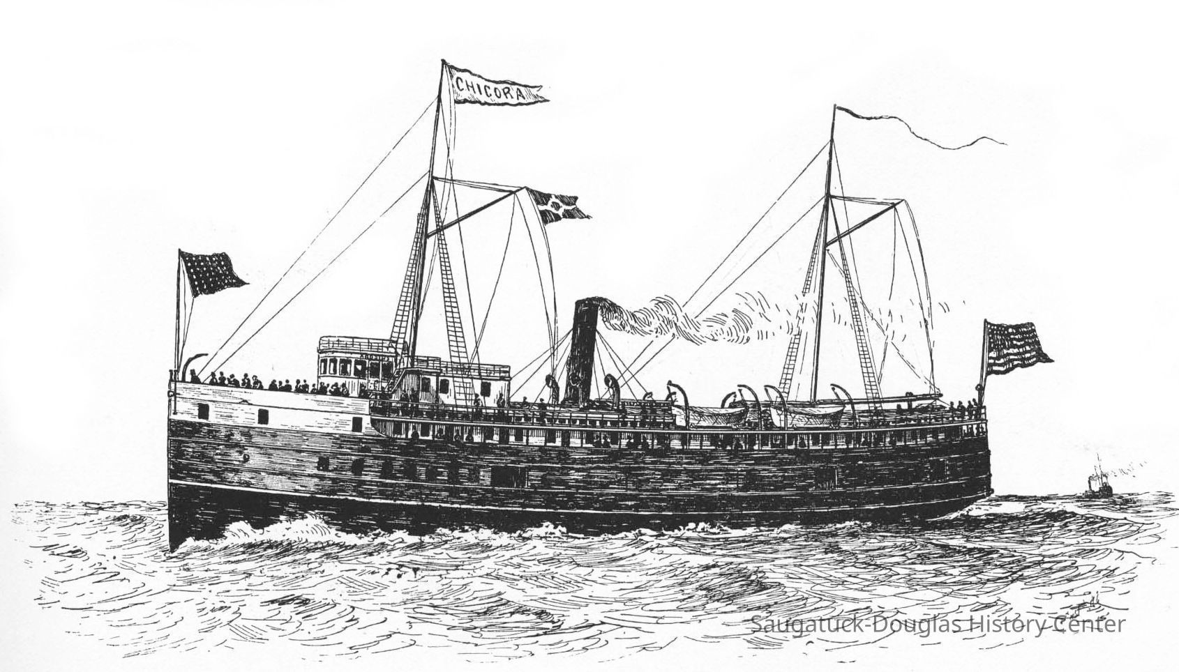Scan of drawing and Commercial Record newspaper clippings about the Chicora steamship and its demise.Collection