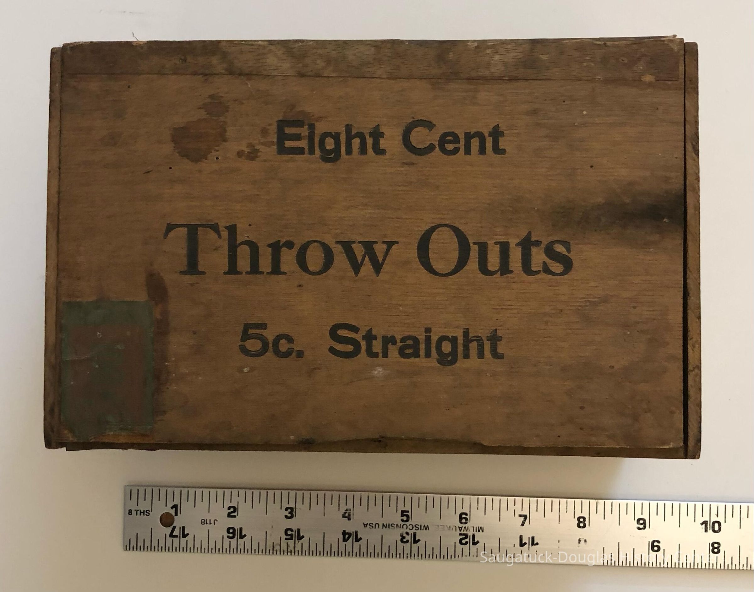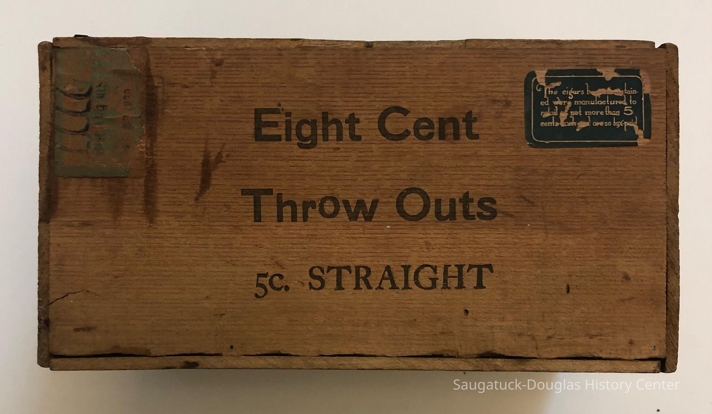 Box A. Eight Cents Throw Outs 5c. straight - 8.5 x 4.5 x 5.5 inches. Box bottom branded "Grand Rapids Cigar Box Company" Factory 29, 4th District Mich. 100.