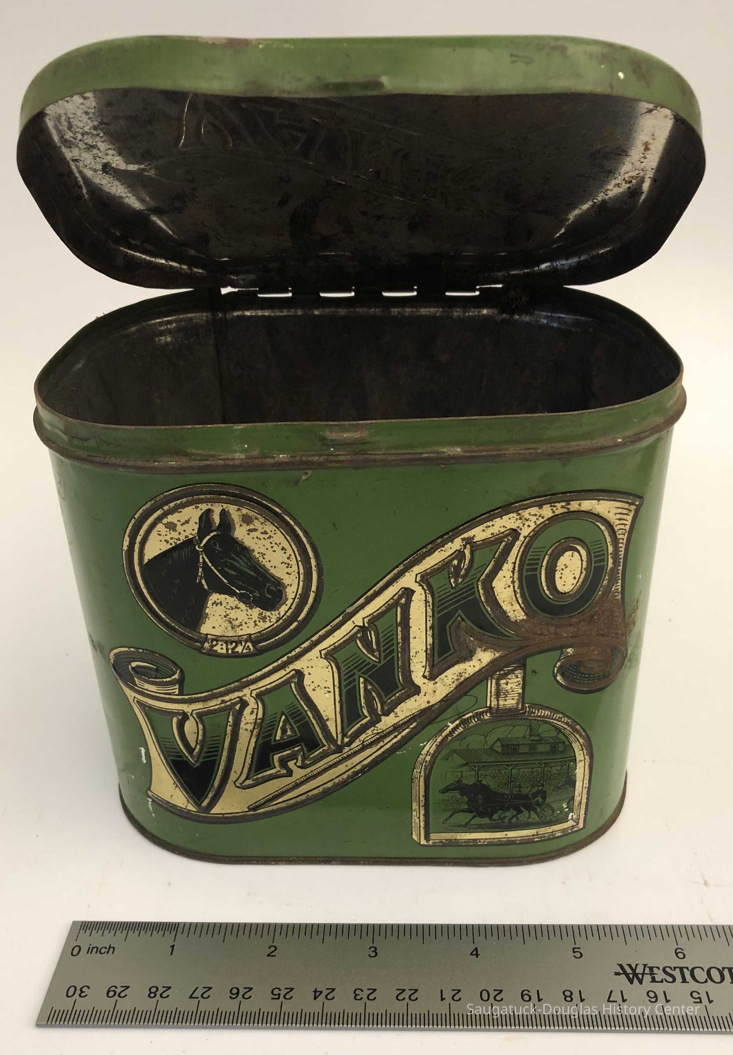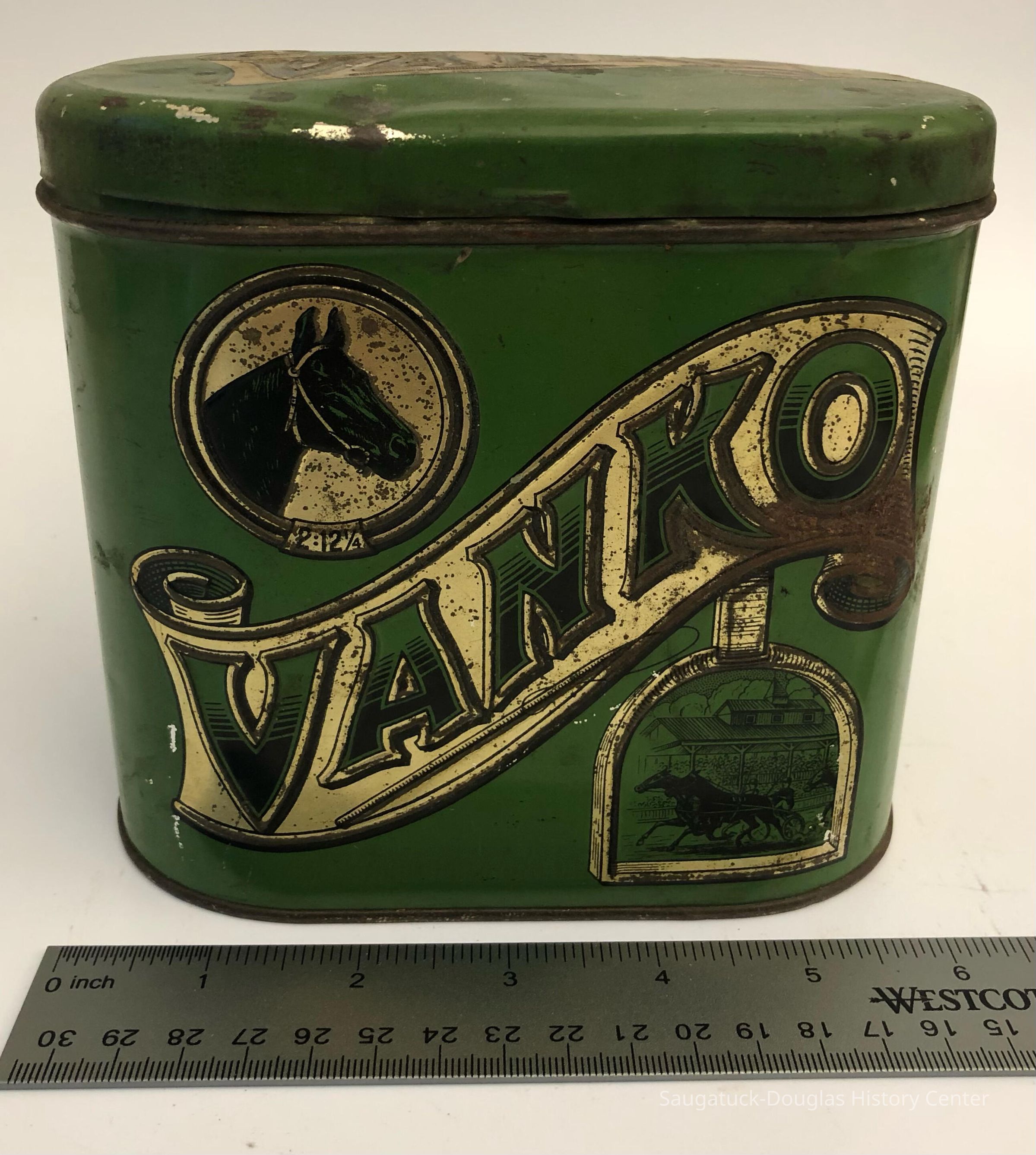 ANTIQUE VANKO CIGAR TIN. LITHOGRAPH TOBACCO CAN. HORSE RACING IMAGES OHIO COUNTRY STOREContext