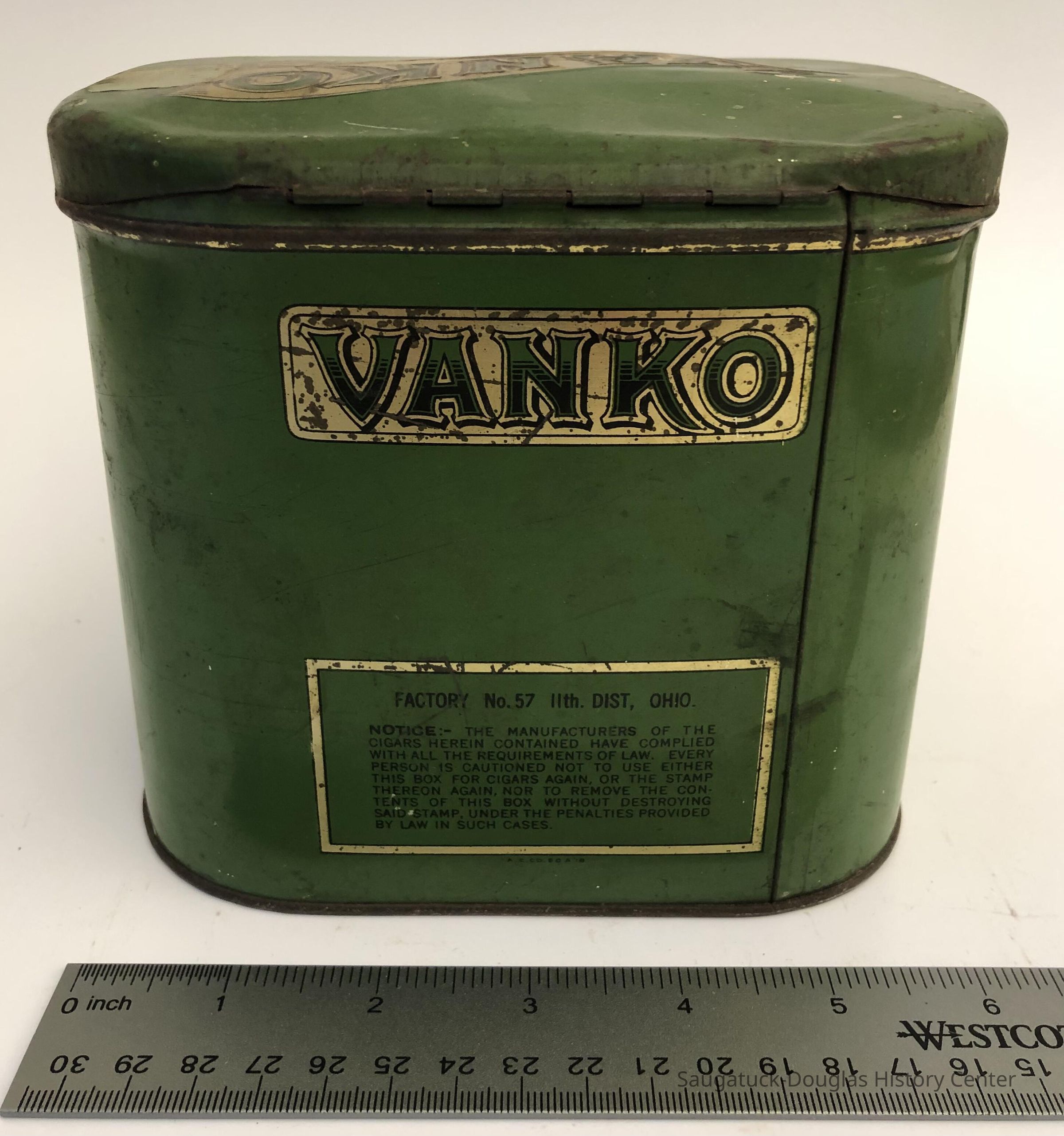 Vanko Cigar tin made in Ohio, Factory No. 57 11th District Ohio.Location