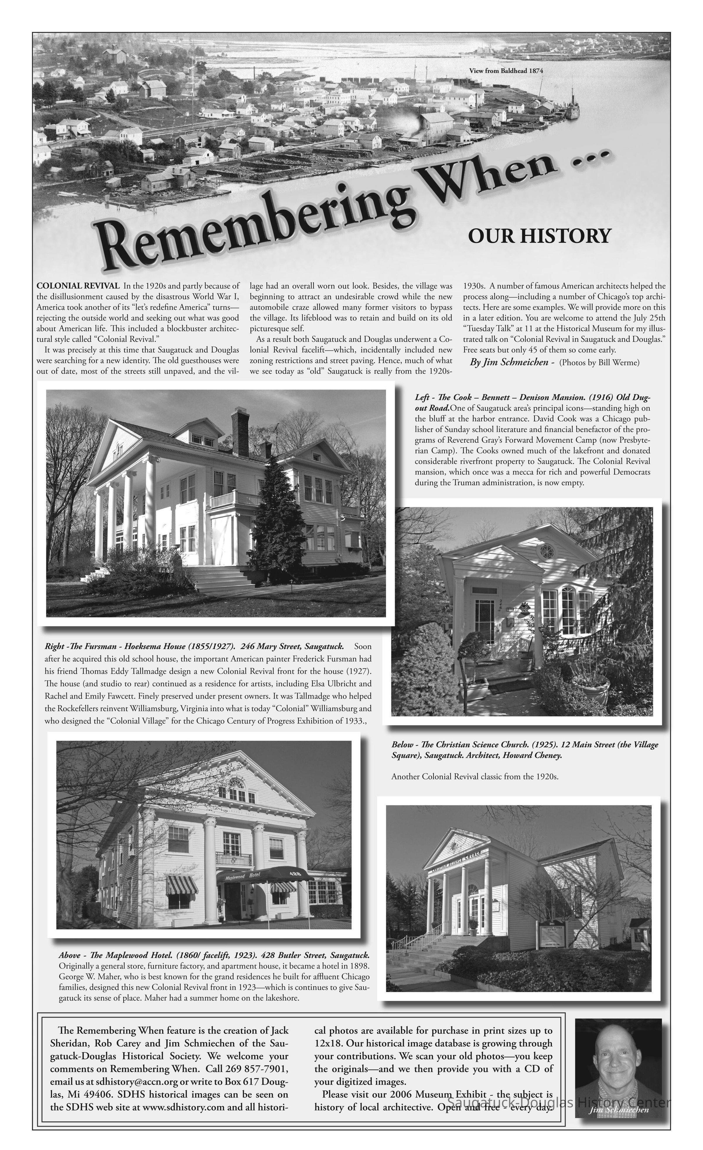 The Local Observer newspaper Remembering When - Our History article titled "Colonial Revival" LO77