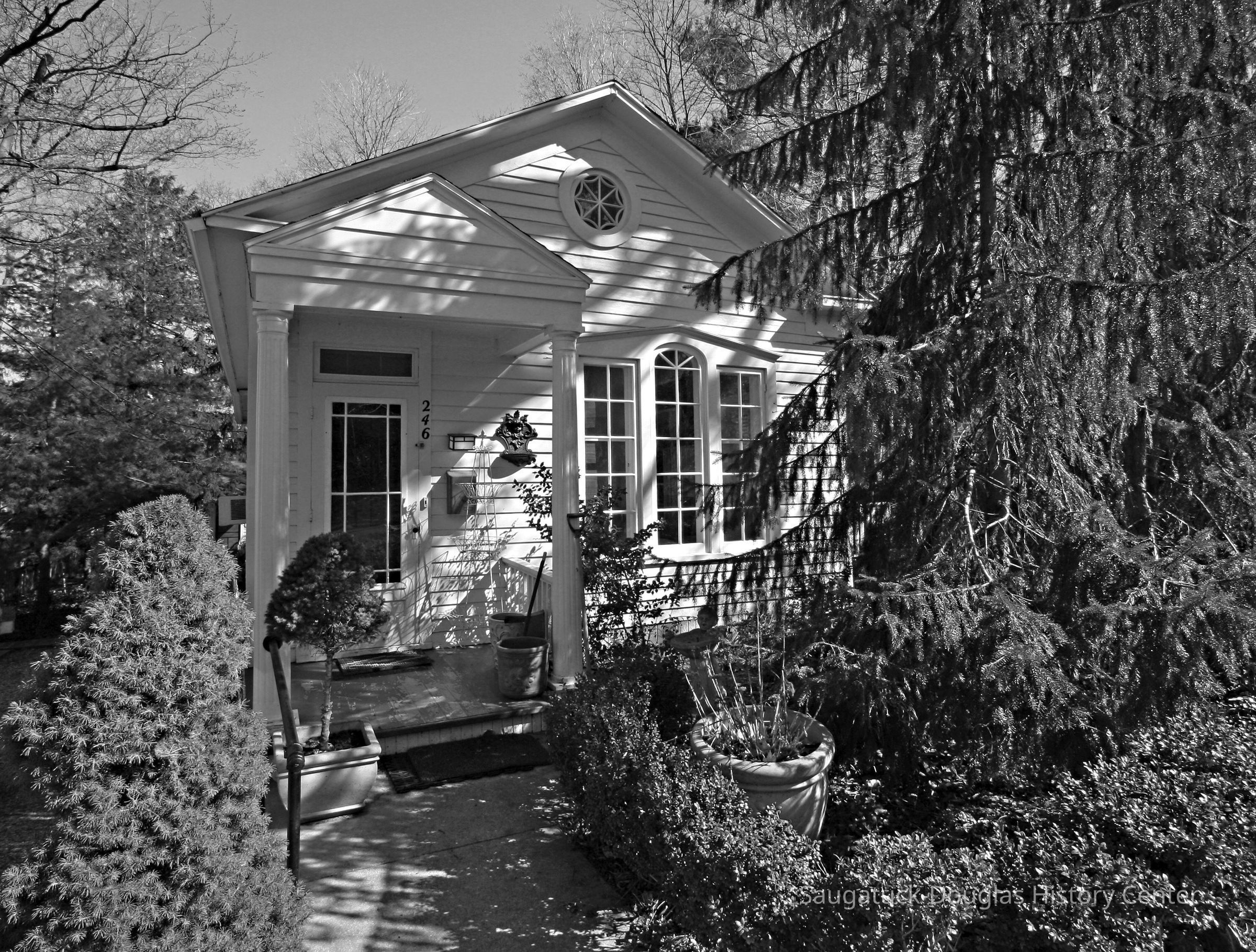 Right -The Fursman - Hoeksema House (1855/1927). 246 Mary Street, Saugatuck. Soon after he acquired this old school house, the important American painter Frederick Fursman had his friend Thomas Eddy Tallmadge design a new Colonial Revival front for the house (1927). The house (and studio to rear) continued as a residence for artists, including Elsa Ulbricht and Rachel and Emily Fawcett. Finely preserved under present owners. It was Tallmadge who helped the Rockefellers reinvent Williamsburg, Virginia into what is today “Colonial” Williamsburg and who designed the “Colonial Village” for the Chicago Century of Progress Exhibition of 1933.,