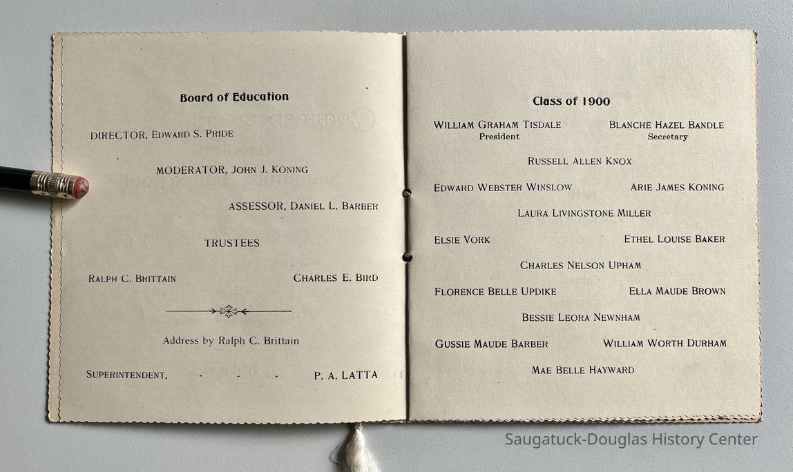Saugatuck Public School 1897-1950, Tisdale, William Graham Jr. 1882-1933, Bandle, Blanche Hazel, Winslow, Edward Webster, Baker, Ethel Louise, Cartwright, Florence Belle (Updike) 1882-1956, Hayward, Mae BellePerson or Organization