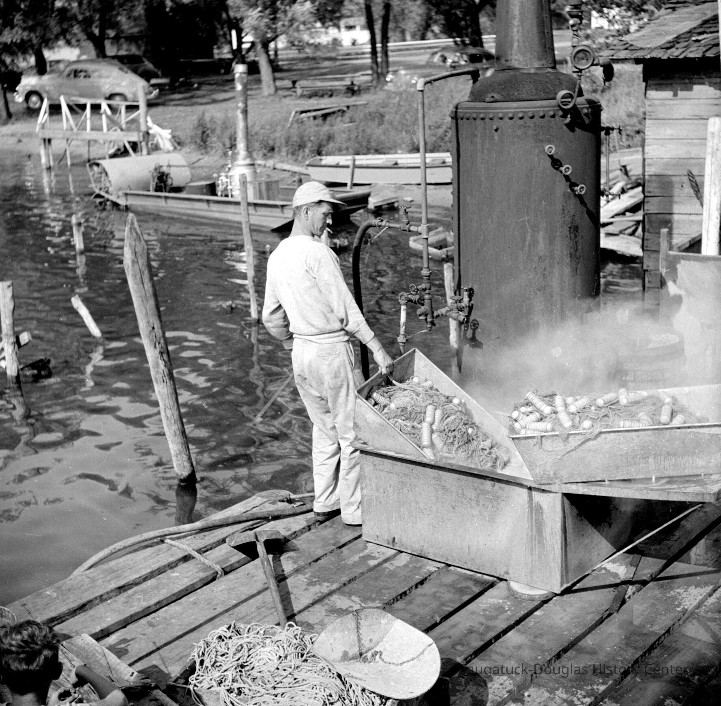 366 3/7 Saugatuck - fish nets 7/1949 Boiling nets, Jack Sewers