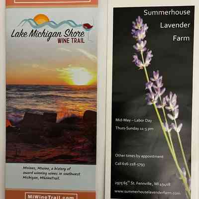 7. Brochures or rack cards from Lake Michigan Shore Wine Tour, Summerhouse Lavender Farm at 2975 65th St. in Fennville.