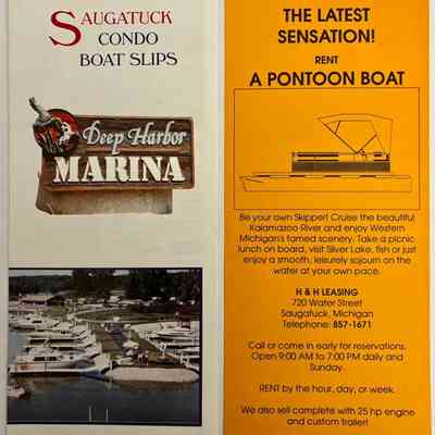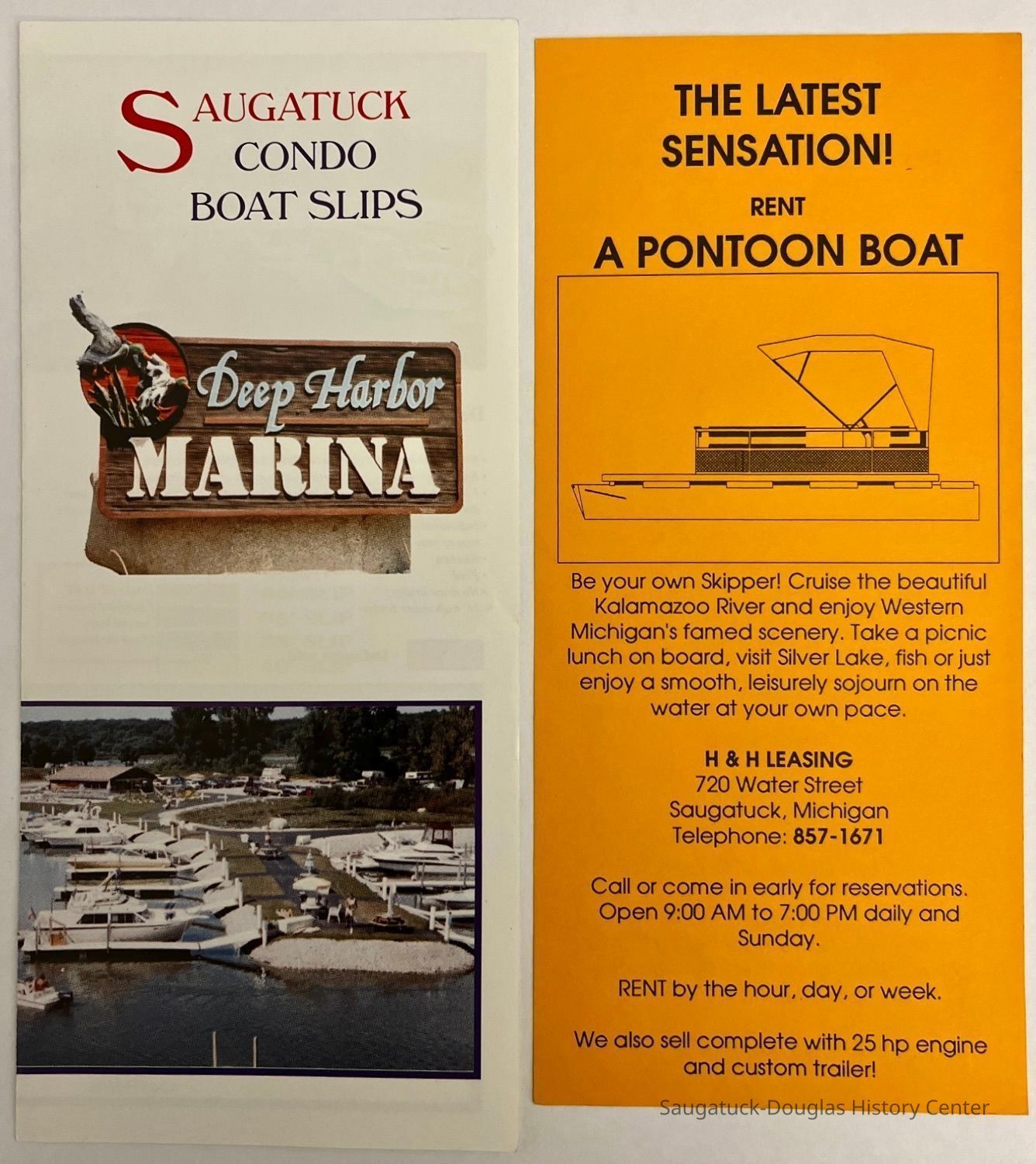 9. Brochures or rack cards from Deep Harbor Marina Saugatuck Condo Boat Slips, H & H Leasing (Pontoon boat rentals) at 720 Water Street