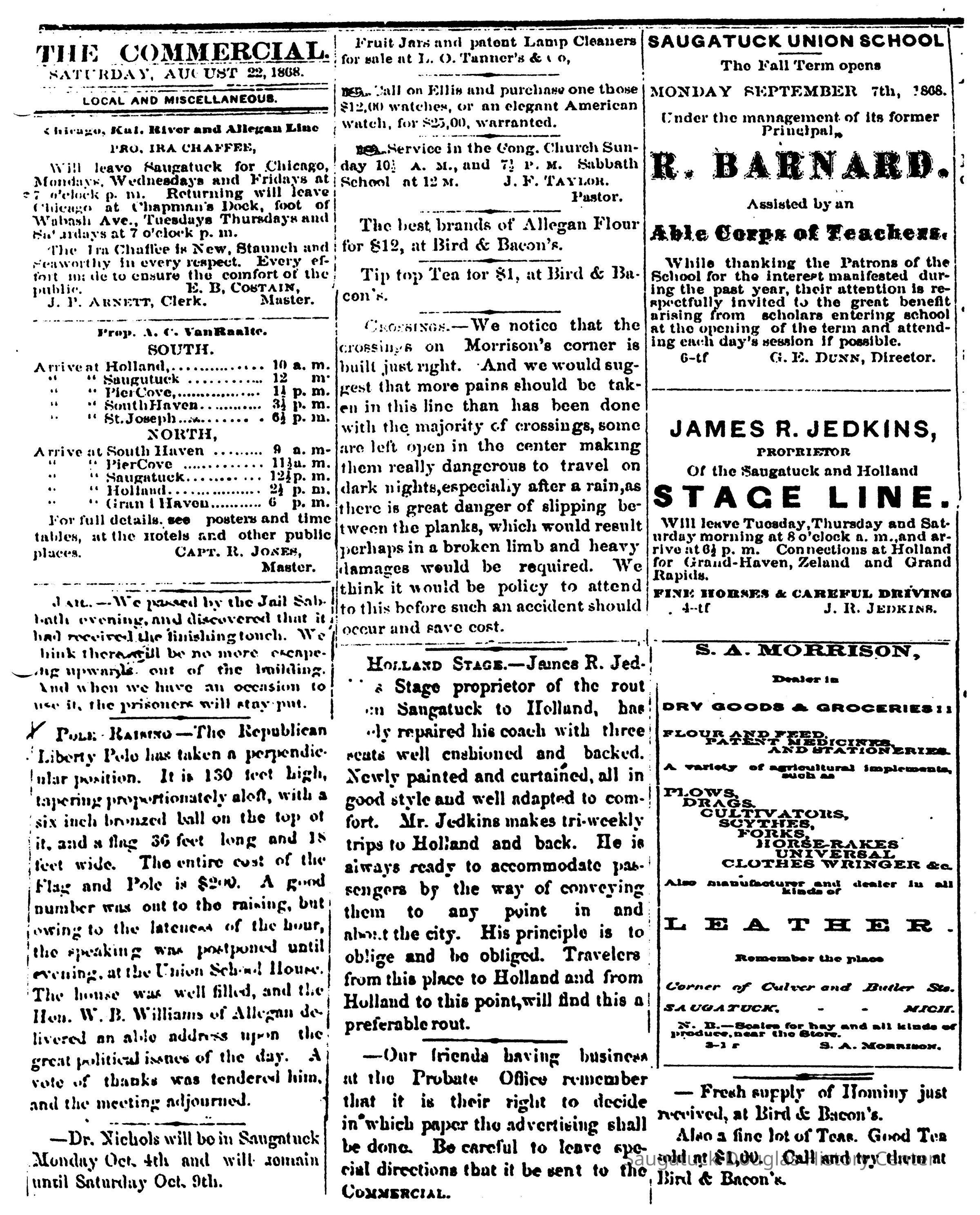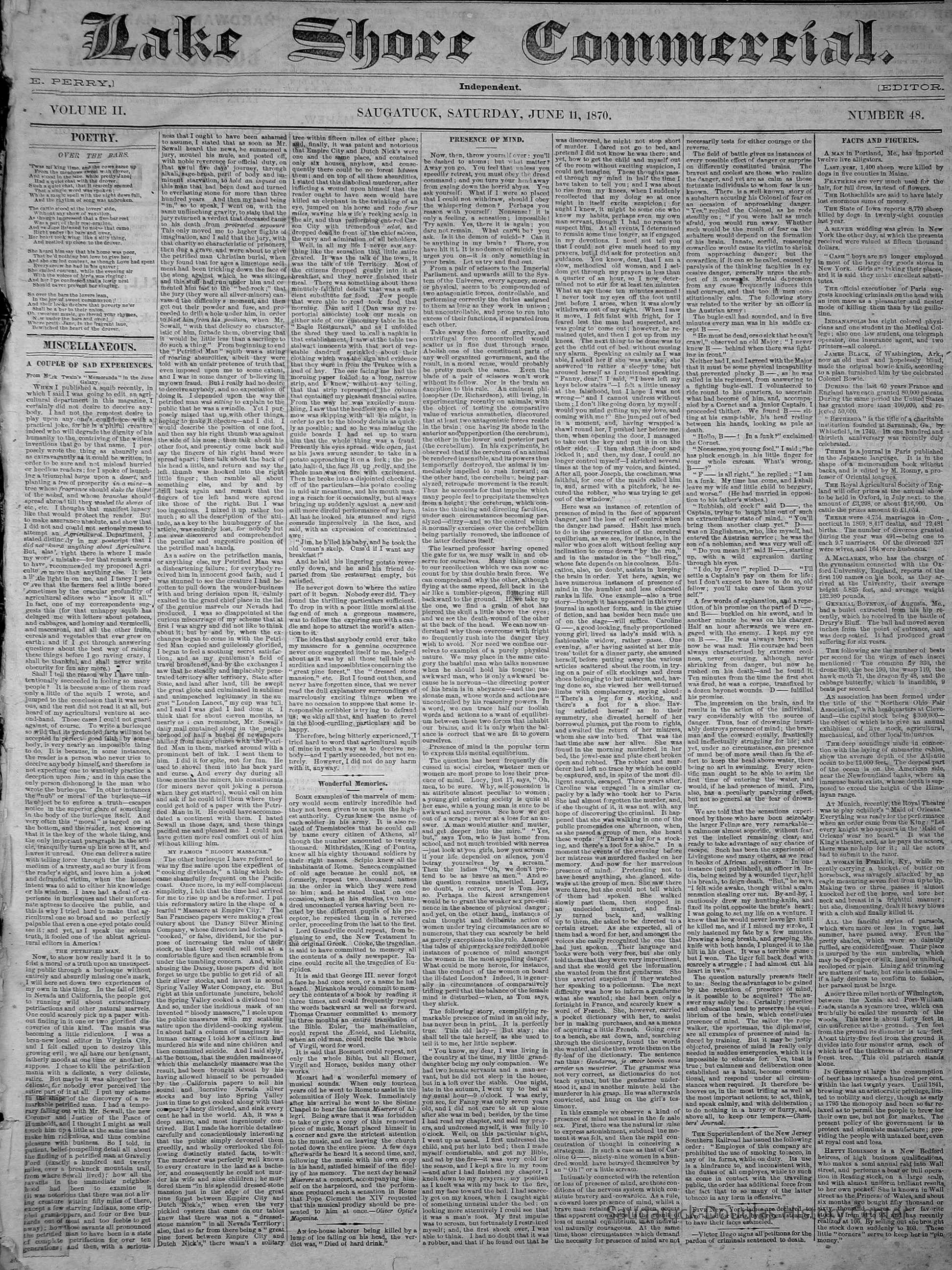 To give you a peek at what the paper looks like we have created a montage of articles appearing in the fall of 1868. My how times have changed. Or have they?