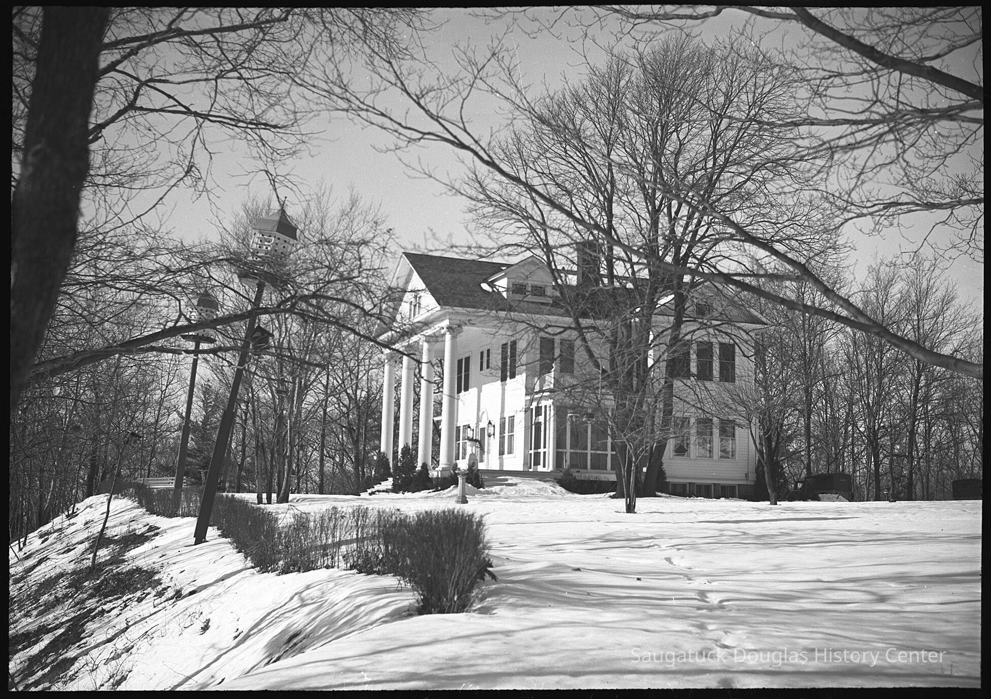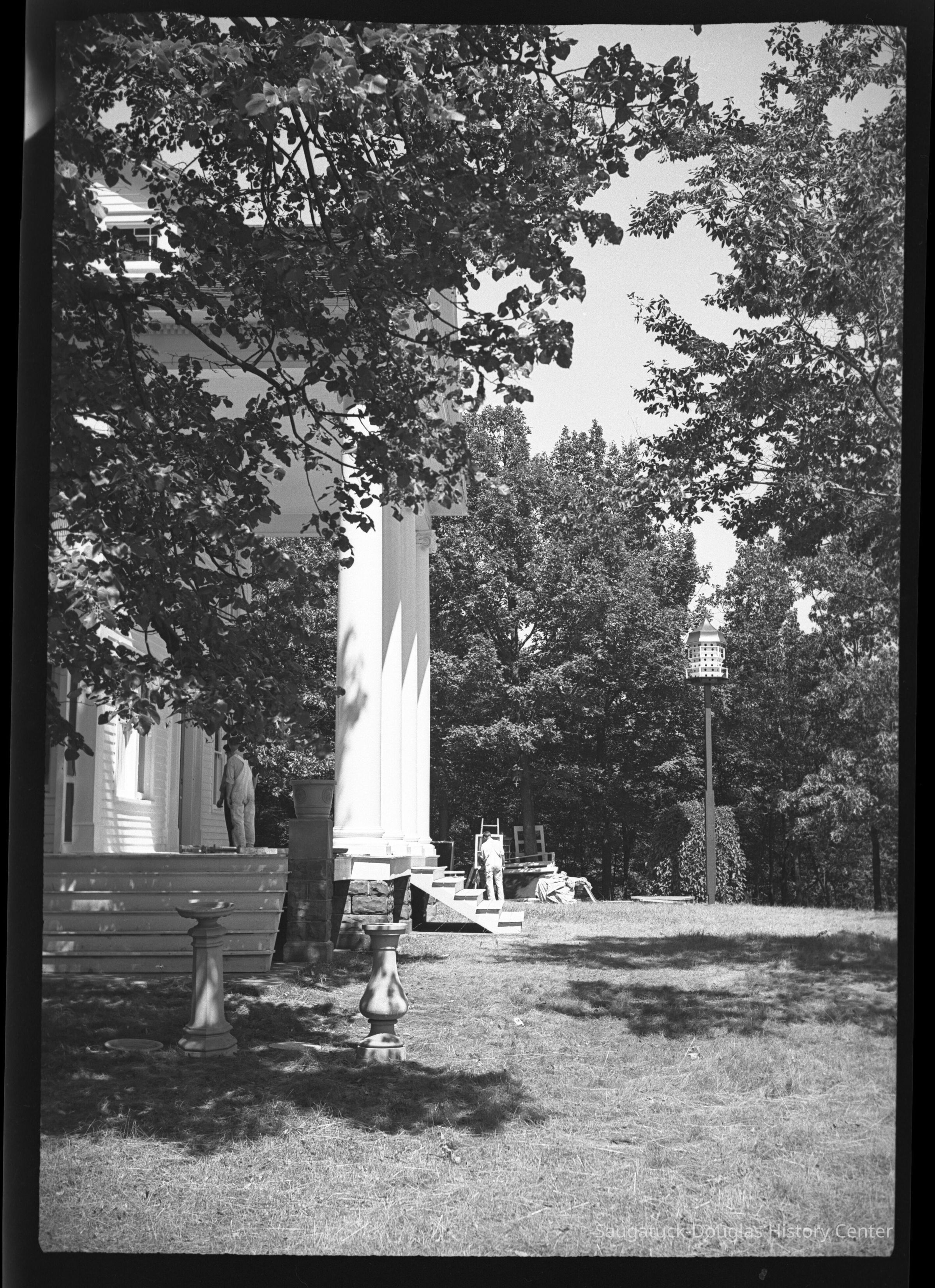 Two negatives of the Cook mansion - painters at work and a view of mansion in winter.Photograph Details