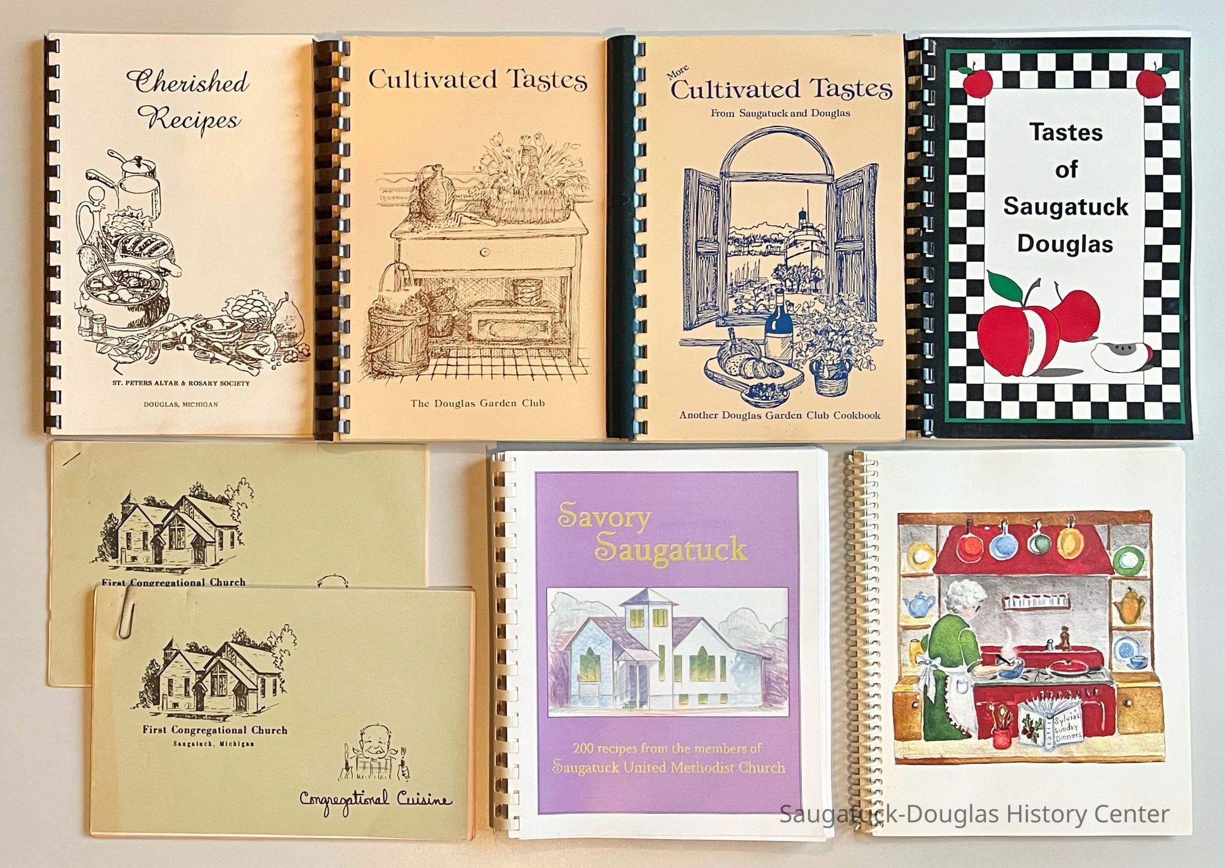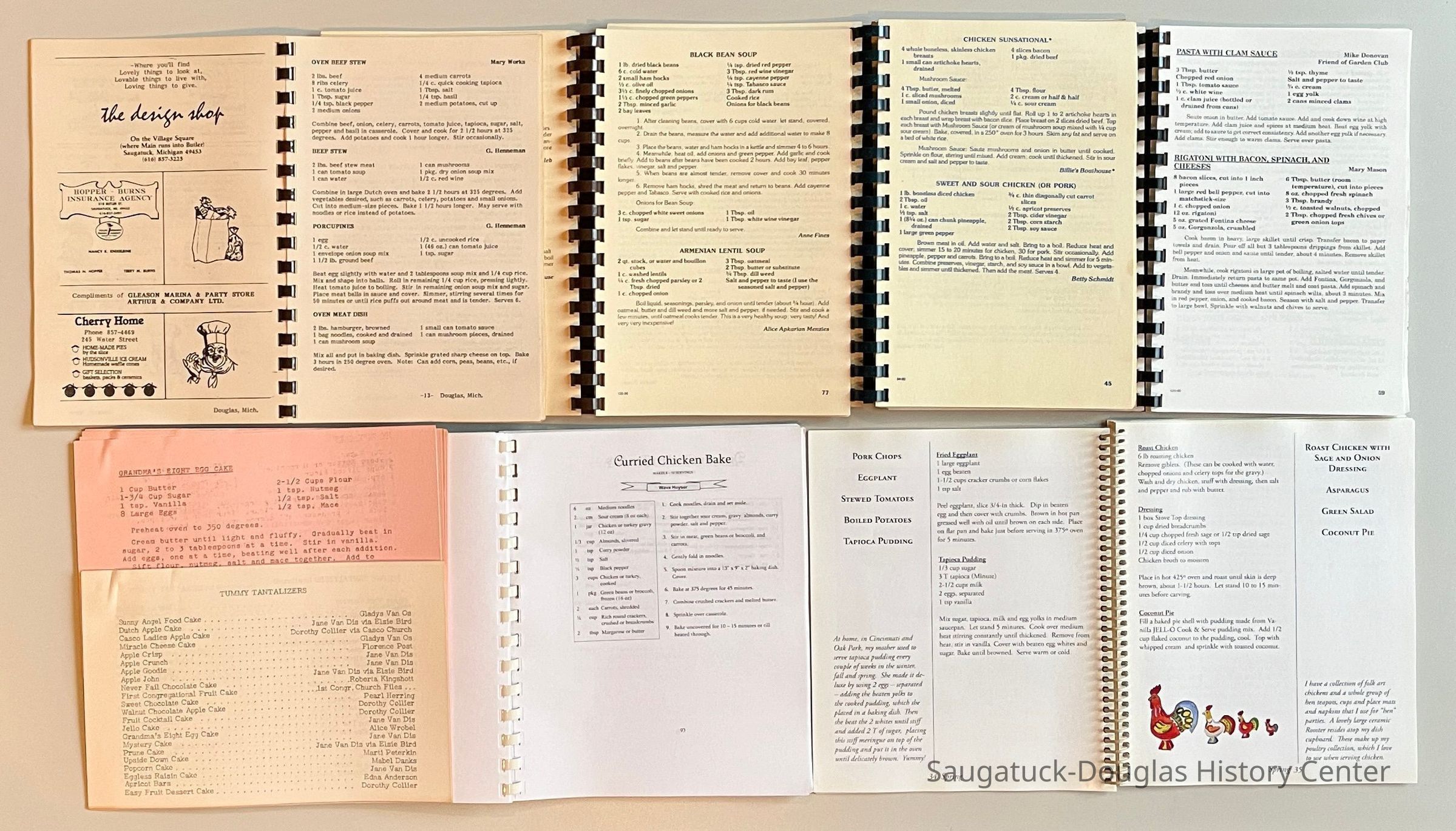 The church and club cookbooks are assembled by members of the community writing down and sharing their favorite recipes. Most recipes includes the names of the donors. Some recipes have been passed down through the family and others are fads. The church and club cookbooks were self-published to create fund raising products.