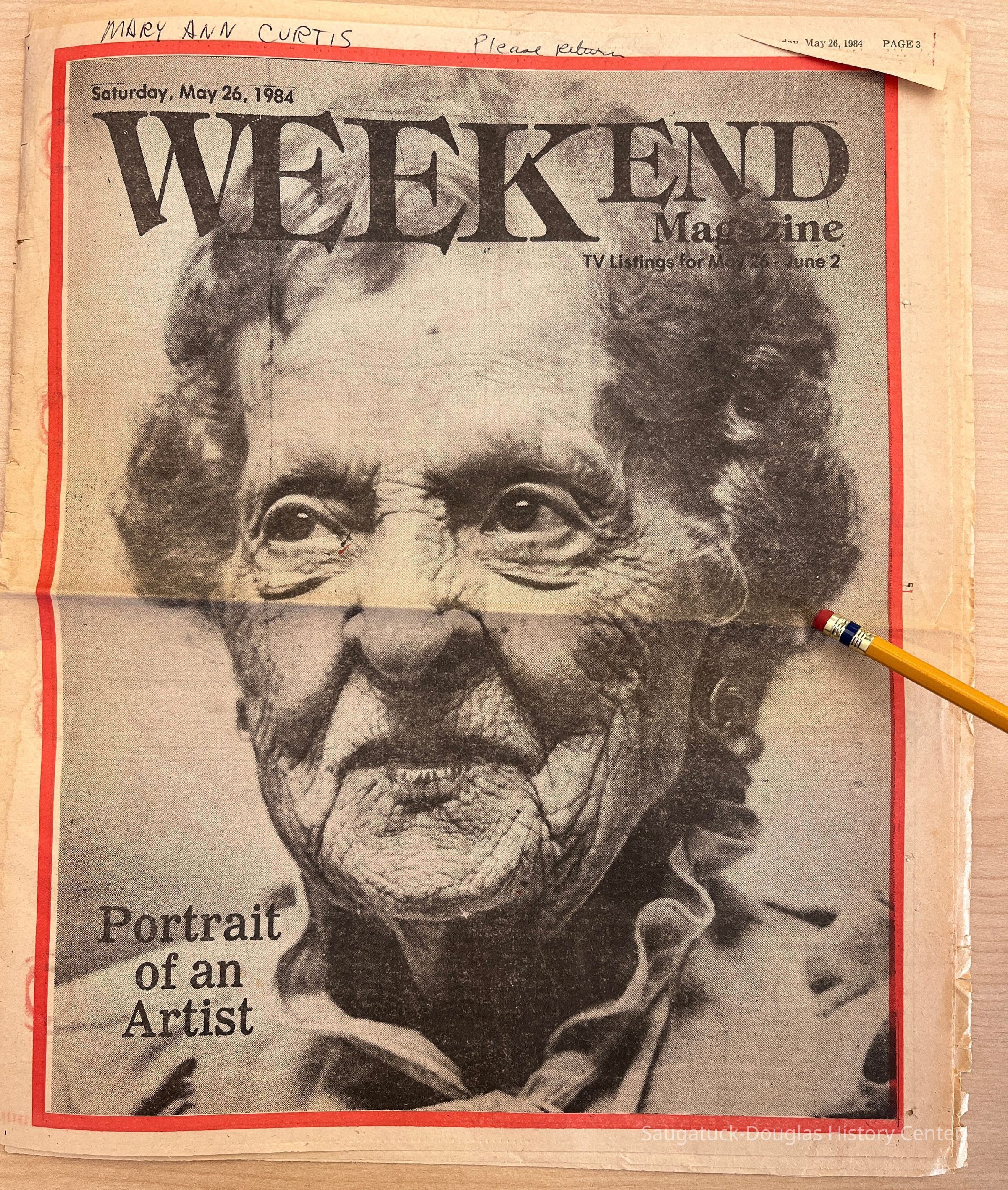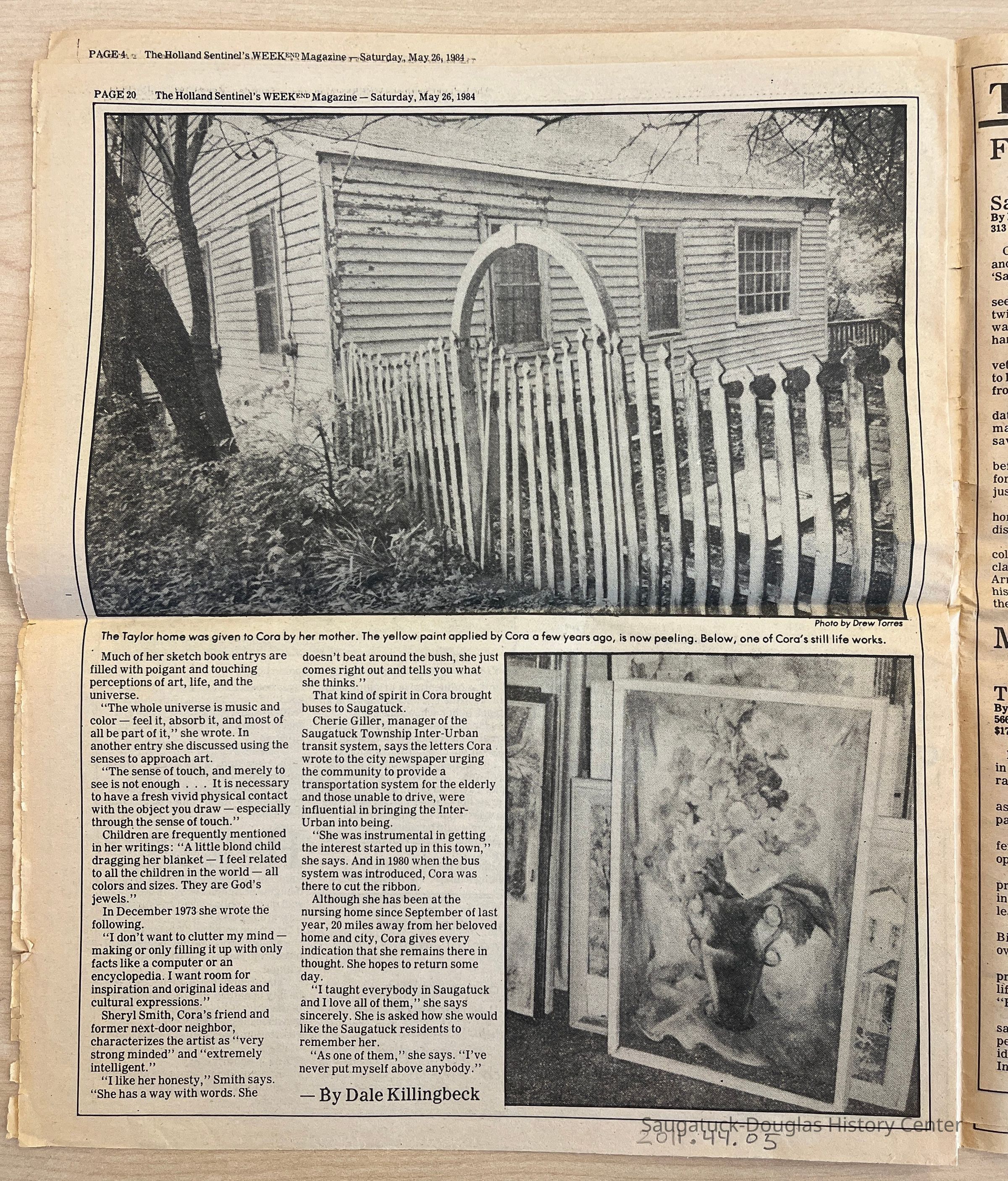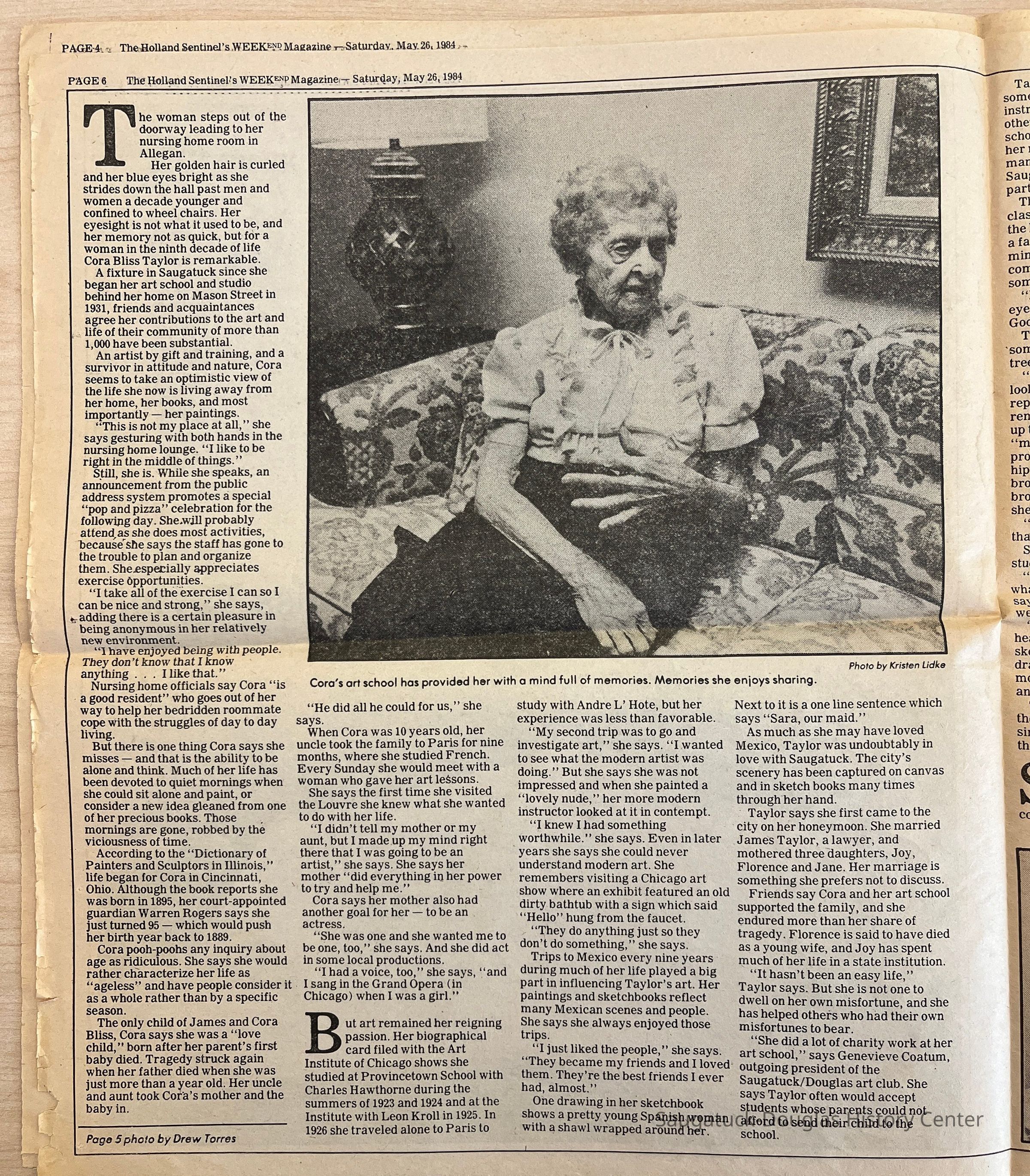 Holland Sentinel's Weekend magazine, dated May 26, 1984, with feature about Cora Bliss TaylorCollection