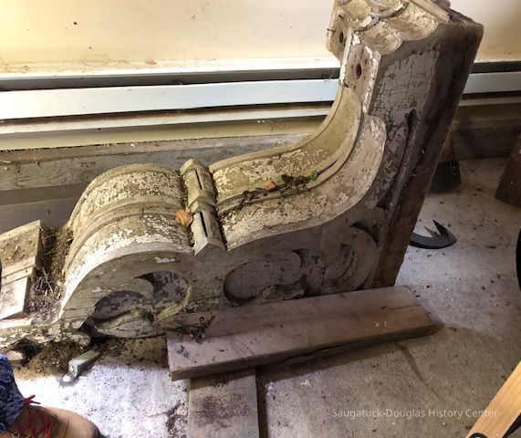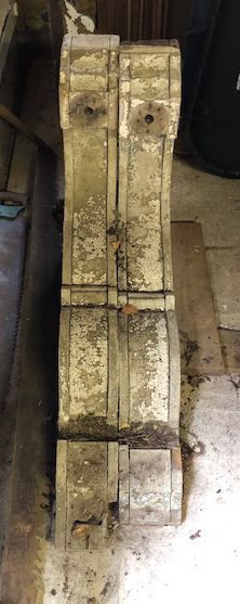 Pair of very large, ornate corbels or roof brackets. White painted wood.Context